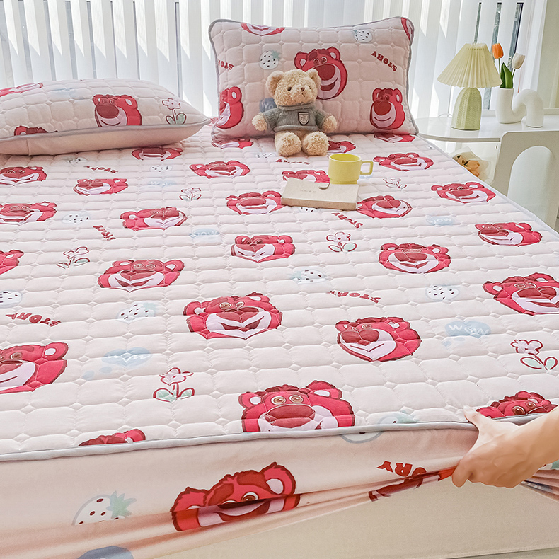 恒尚居 2024新款小清新印花水洗棉大豆夹棉床笠 草莓熊