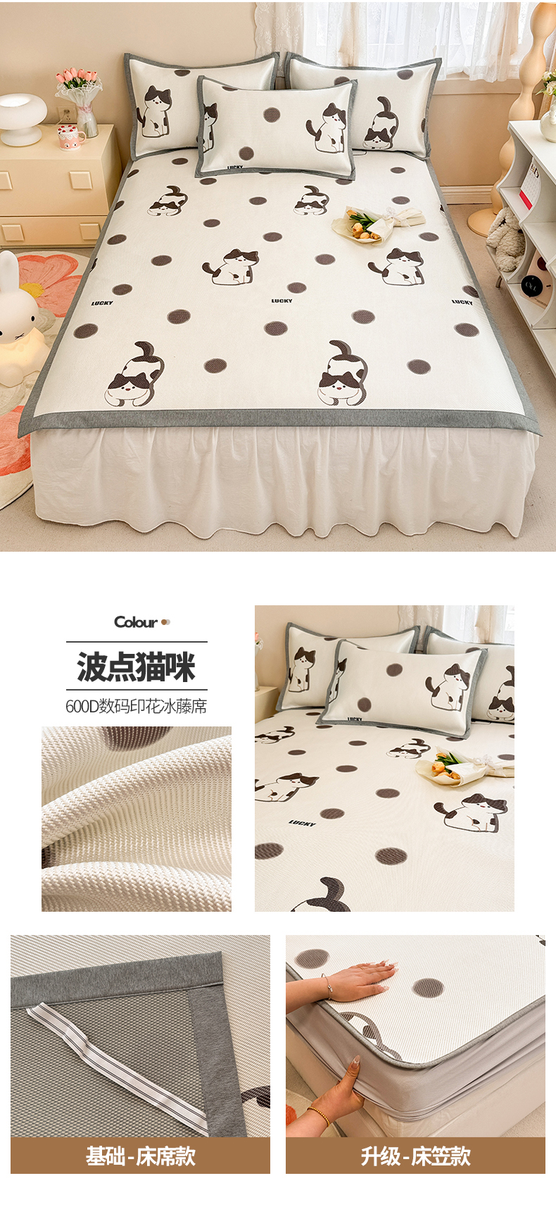 (总)懒猫家纺 2024新款600D数码印花冰藤凉席-床单款
