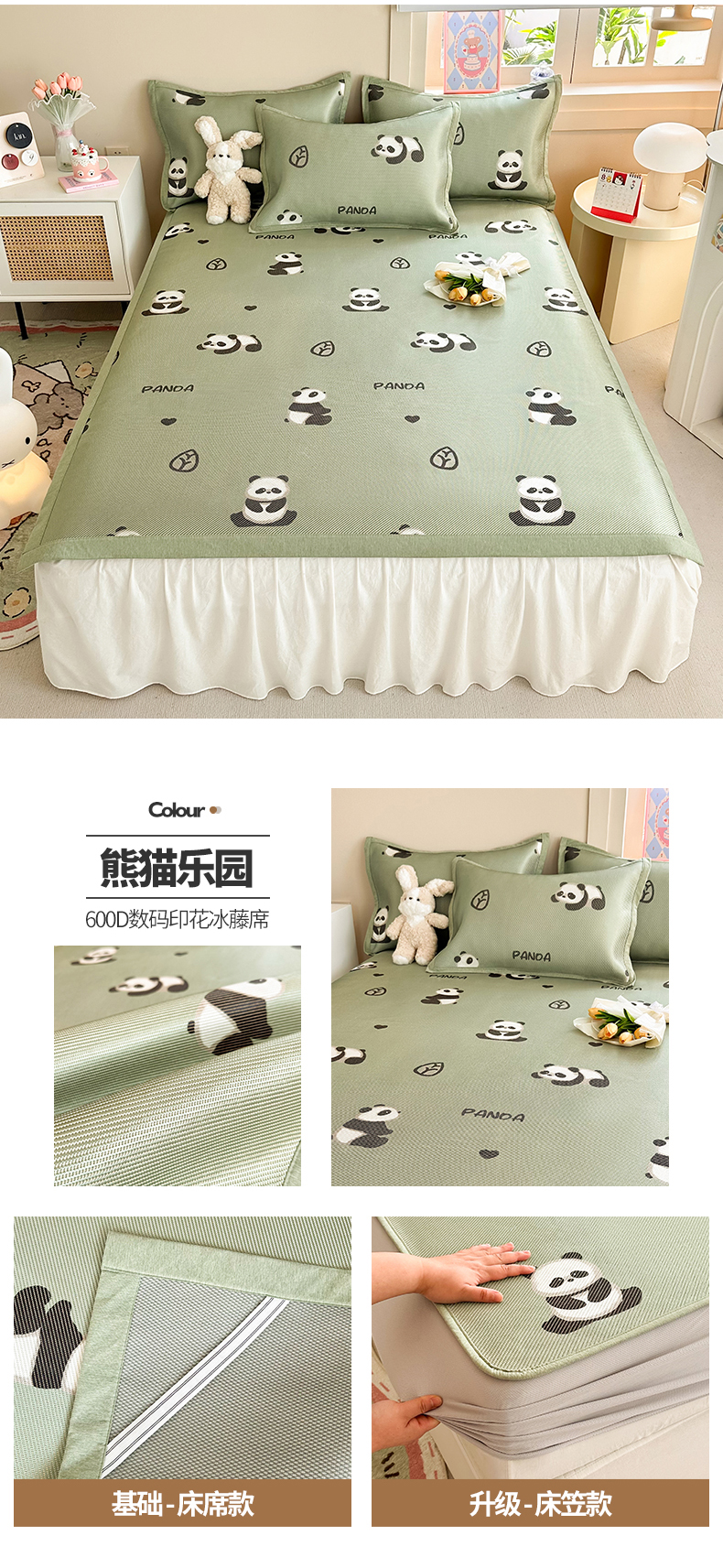商品名称:懒猫家纺 2024新款600D数码印花冰藤凉席-床单款 熊猫乐园