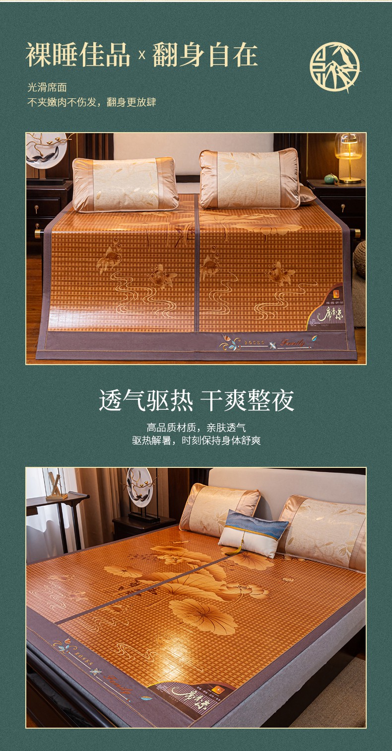 (总)新月家纺(锦威郎) 2024新款年年有余竹青冰丝凉席