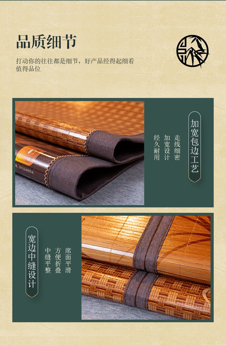 (总)新月家纺 2022新款凉席4.0碳化竹席 学生宿舍席子,4.0碳化席