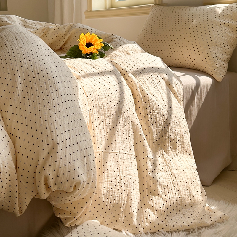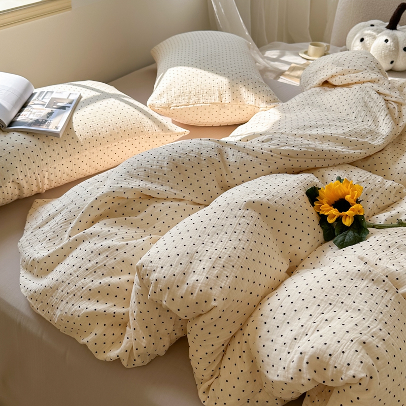 洋铭区(原狠狠爱) 2024新款皱皱纱四件套 黑白波点