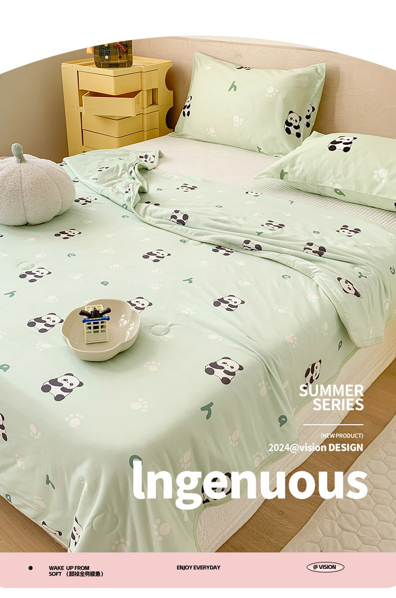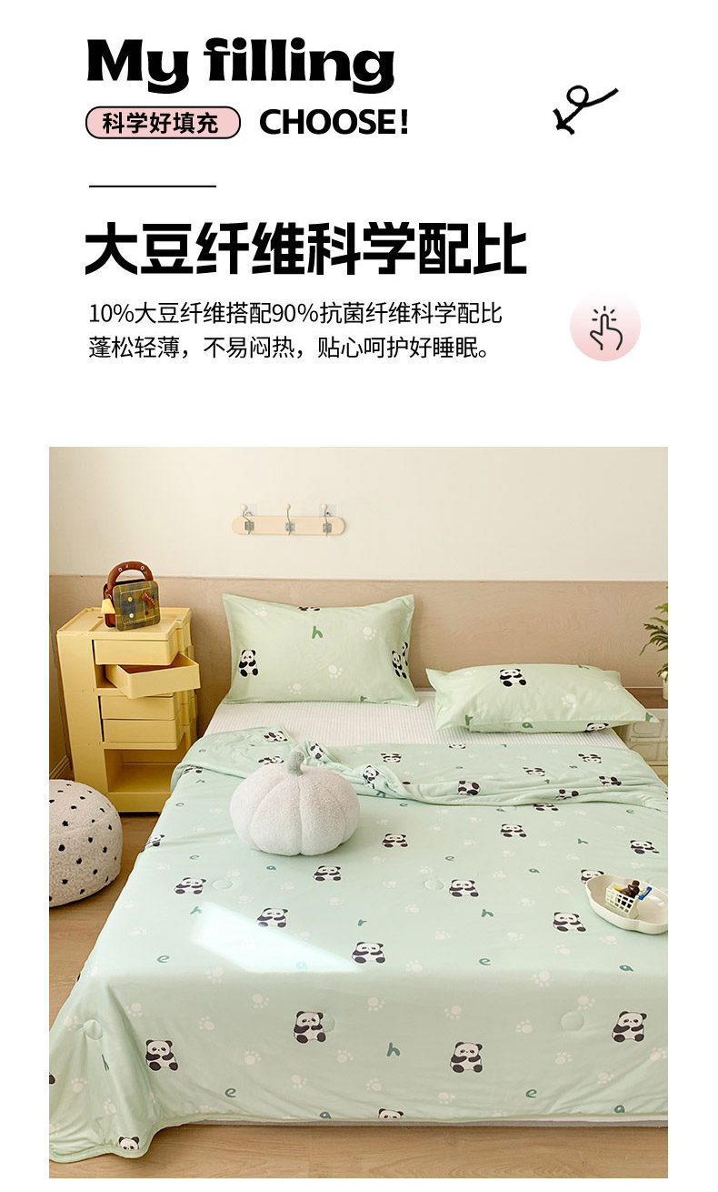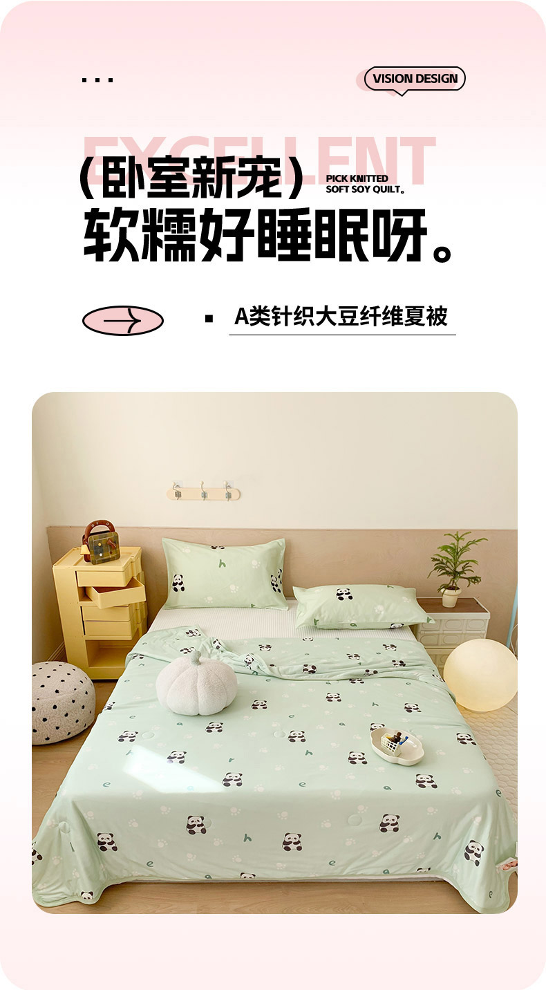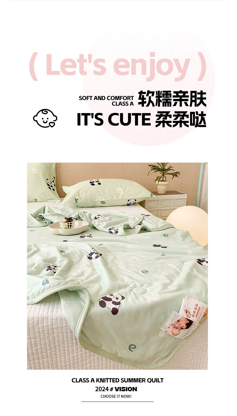 商品名称:TT.one 塔塔家居 2025新款针织棉大豆纤维夏被 熊猫乐园(绿)