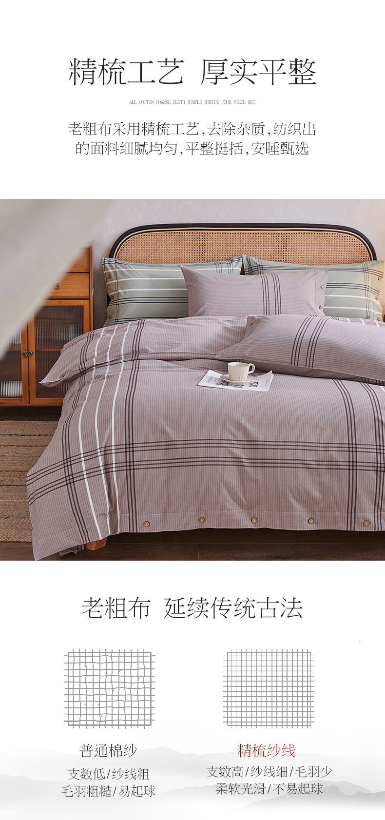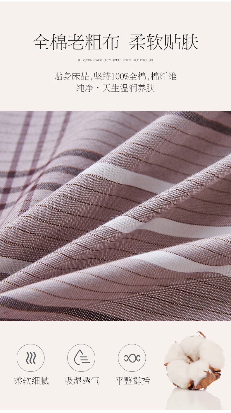 商品名称:金泰莱 2025新款32支精梳棉老粗布四件套全棉四件套纯棉四件套 大格-咖