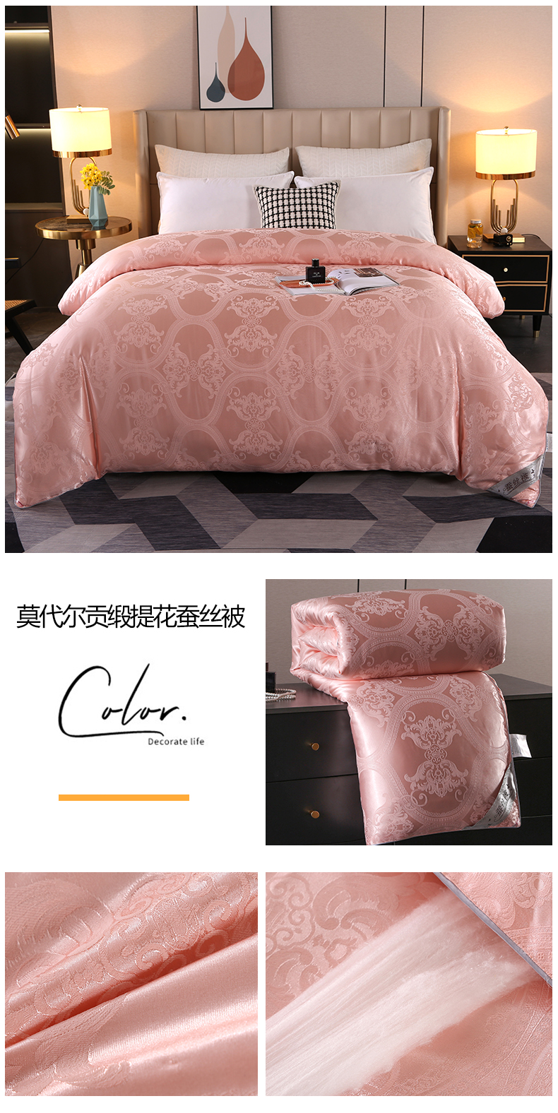 (总)尚品2025新款全棉提花100%蚕丝被春夏季二合一冬被,白,粉,红,灰,绿,玉