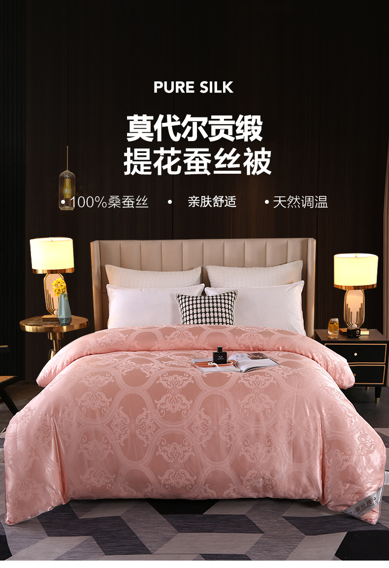 (总)尚品家纺 2025全棉提花手工订花蚕丝被冬被子母被,公主粉,浅米黄,柔情玉,绅士灰,月光白,中国红