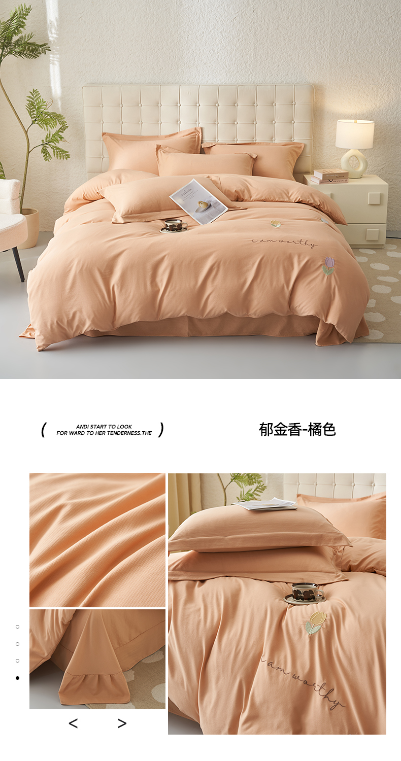 商品名称:闲鱼家纺 2025新款A类亲肤刺绣四件套春雅系列 郁金香-橘色