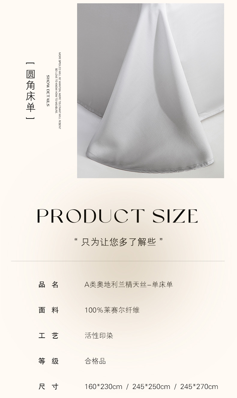 商品名称:云栖家居 202460支A类兰精天丝系列单品床单(风格一)银灰