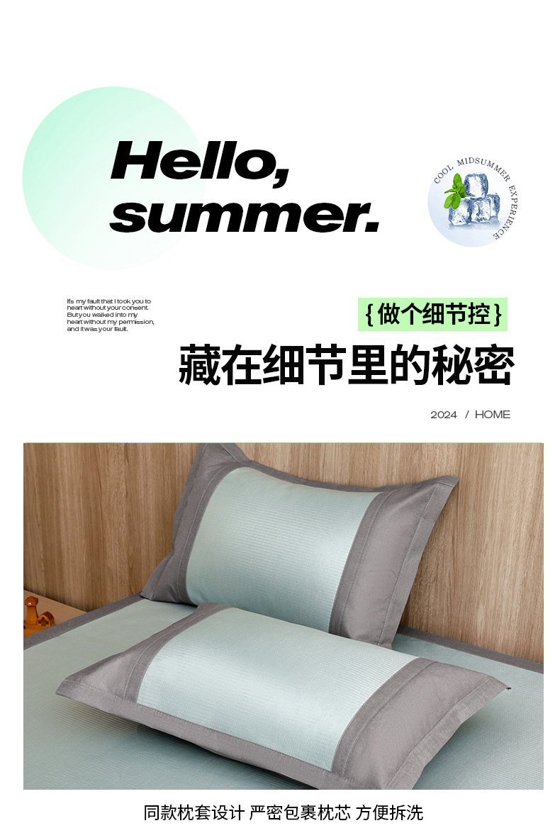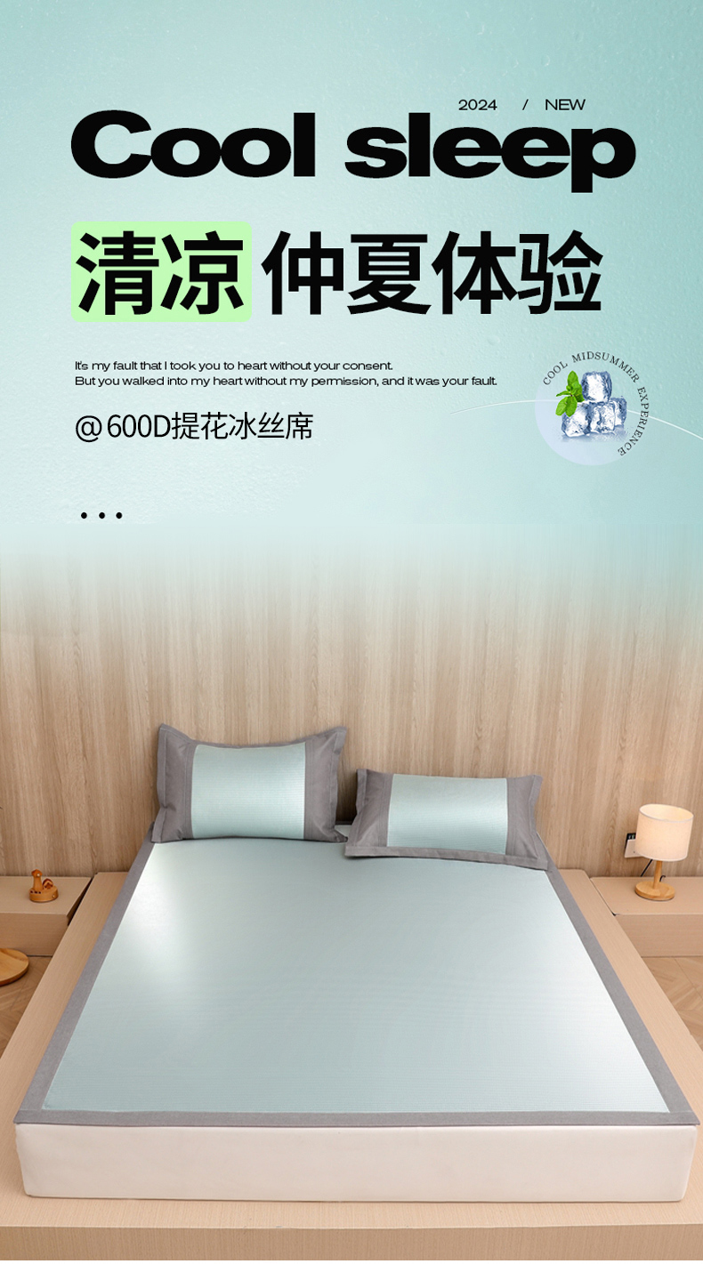 (总)席之家 2025新款600D提花冰丝席,灰色,绿色