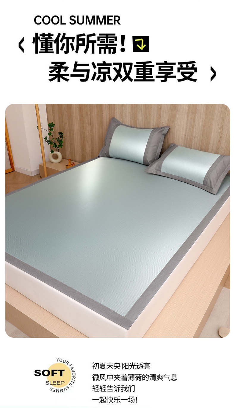 (总)席之家 2025新款高精密三纬可水洗冰提花丝凉席,莫奈-咖,莫奈-灰,莫奈-绿
