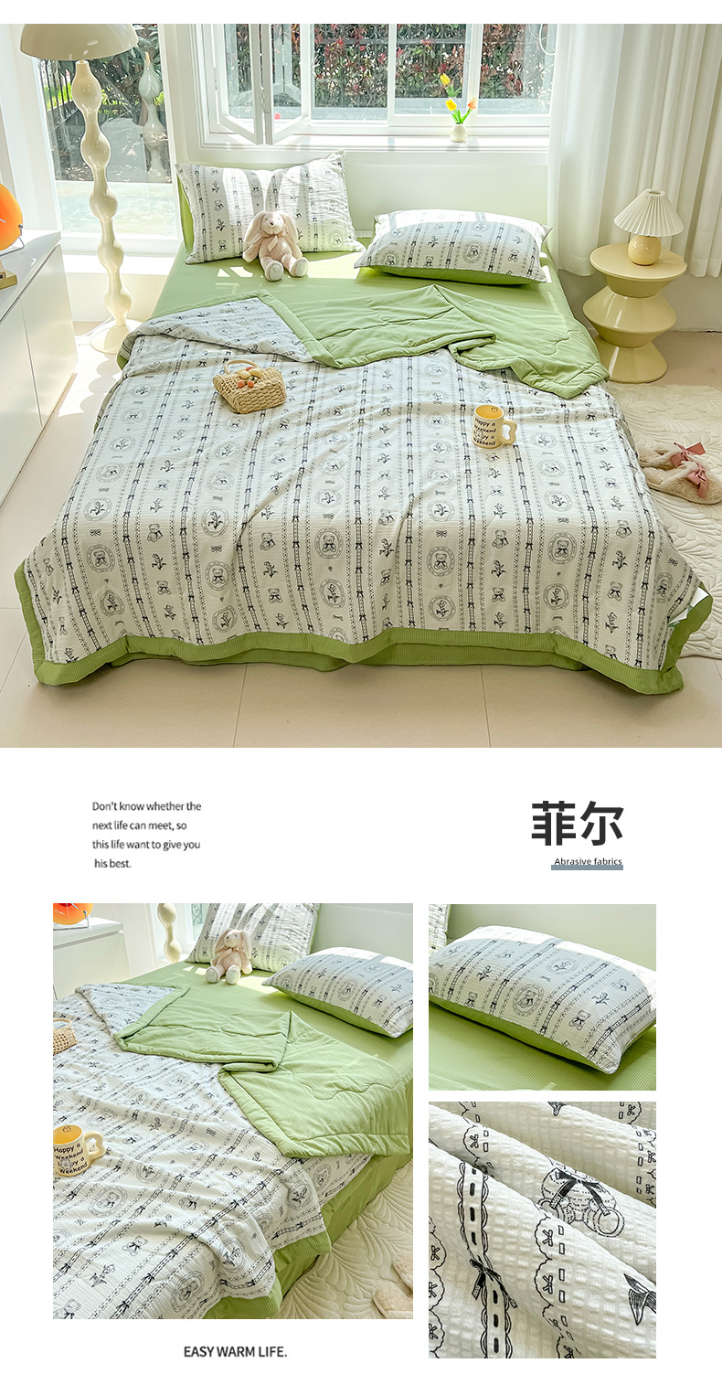 当前位置: 91家纺网 > 商品网购 > 床品套件 > 四件套 > 夏被四件套 > 安哆啦家纺 2024新款A类泡泡棉印花夏被四件套 菲尔