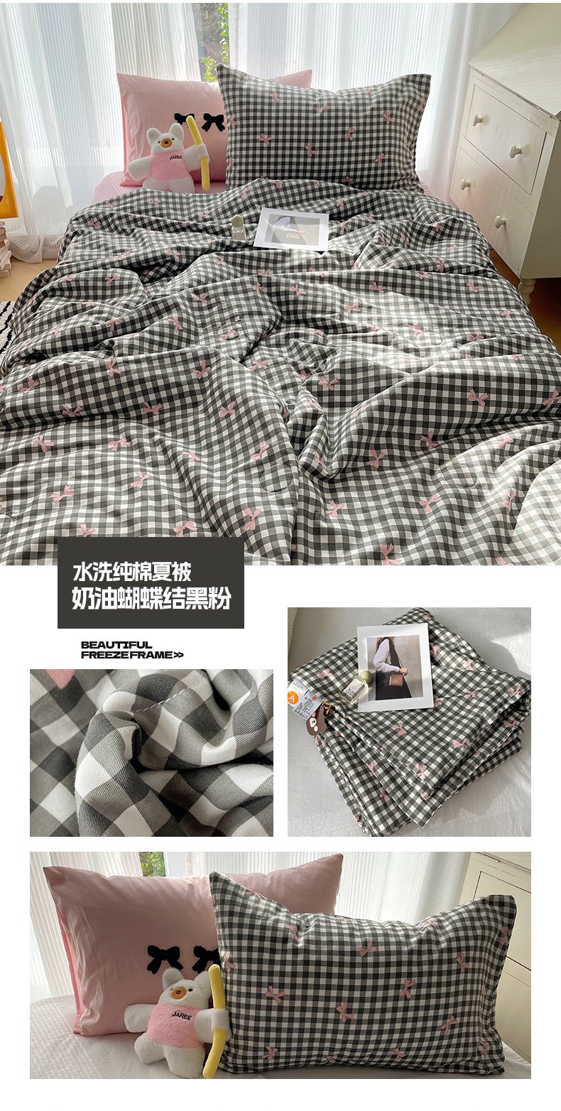 • 91家纺网 家纺一手货源 找家纺 桃子家居 2024新款A类纯棉水洗棉毛巾绣奶油蝴蝶结夏被四件套单夏被单品系列 水洗纯棉夏被-奶油蝴蝶结黑粉