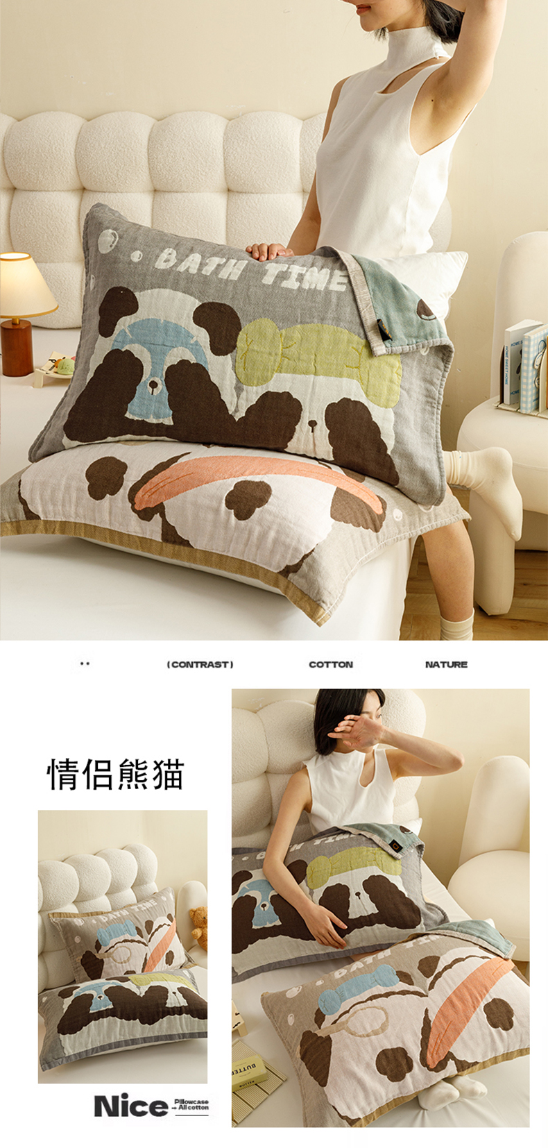 (总)麻依 新款全棉四层纱布枕套一对装纽扣款枕套,爱心萌宠,波点猫,好伙伴,考拉熊,快乐修狗,奶油熊,苹果香芋猫,曲奇饼干,趣多多,淘气猫,小团圆,紫色樱桃猫