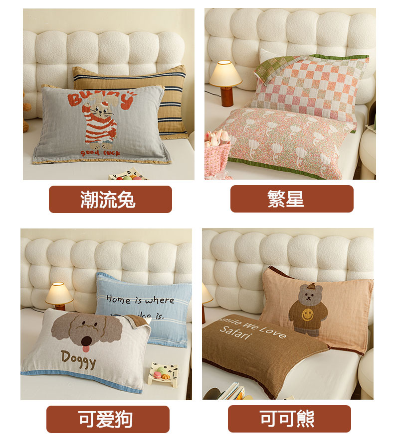 (总)麻依 2025新款治愈风全棉纯棉四层纱布枕巾,组合图仅供展示不可下单,KT时光,抱枕小熊,粉星KT,好多狗,花丛KT,可可小猫,亮晶晶,满心KT,暖心小狗,贴布猫,星星KT,星星人