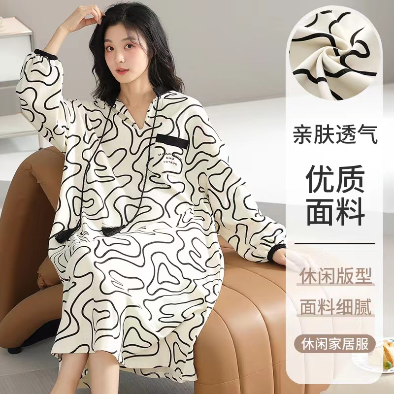居家日用 > 睡衣 > (总)洛兰沙家居馆【只代发】【只代发】 2024新款睡裙女夏季新品针织棉公主风短袖睡裙家居服宽松女士棉全棉连衣裙可外穿
