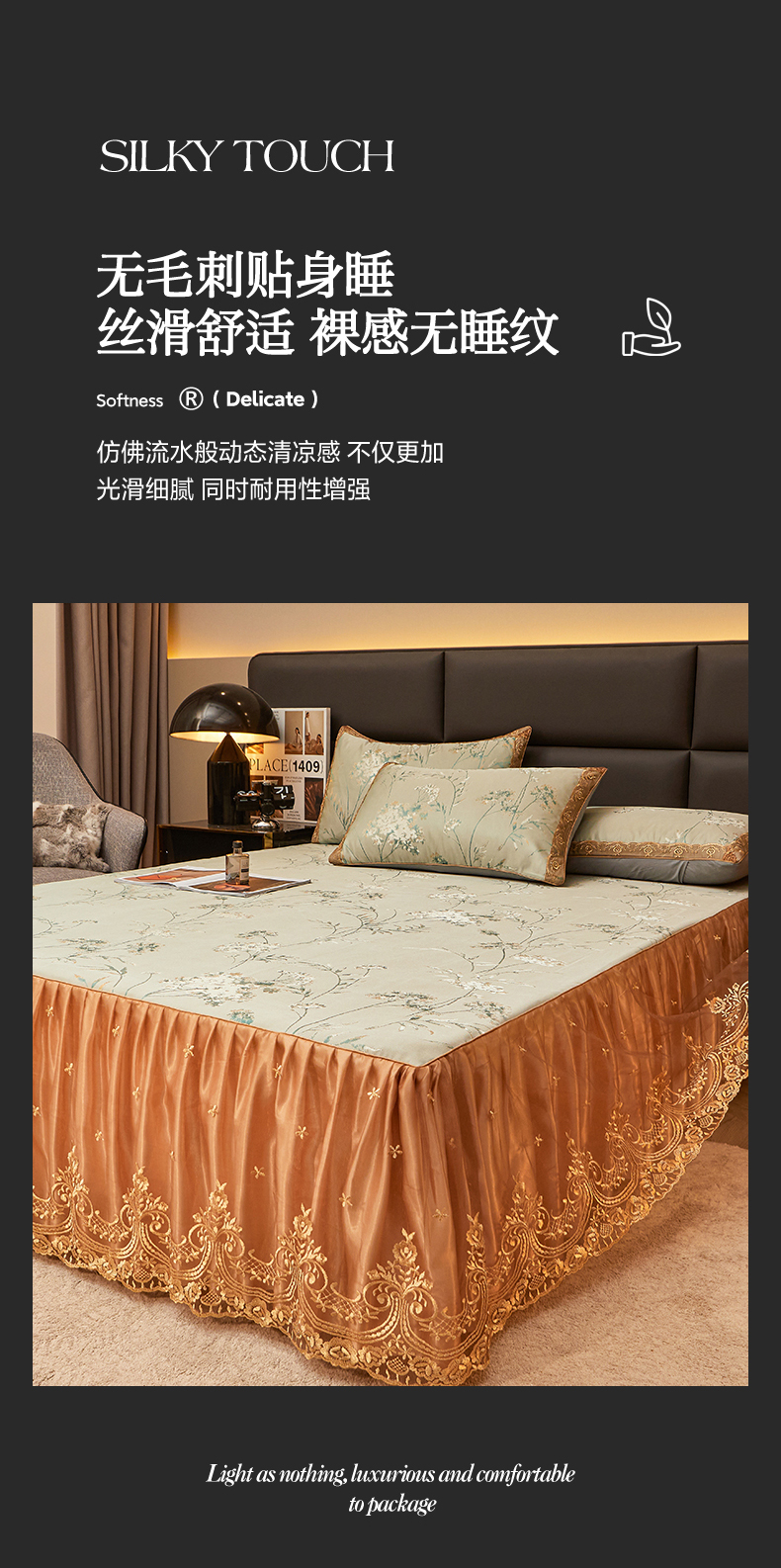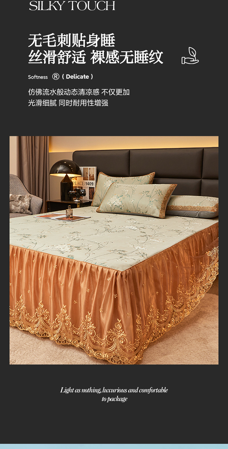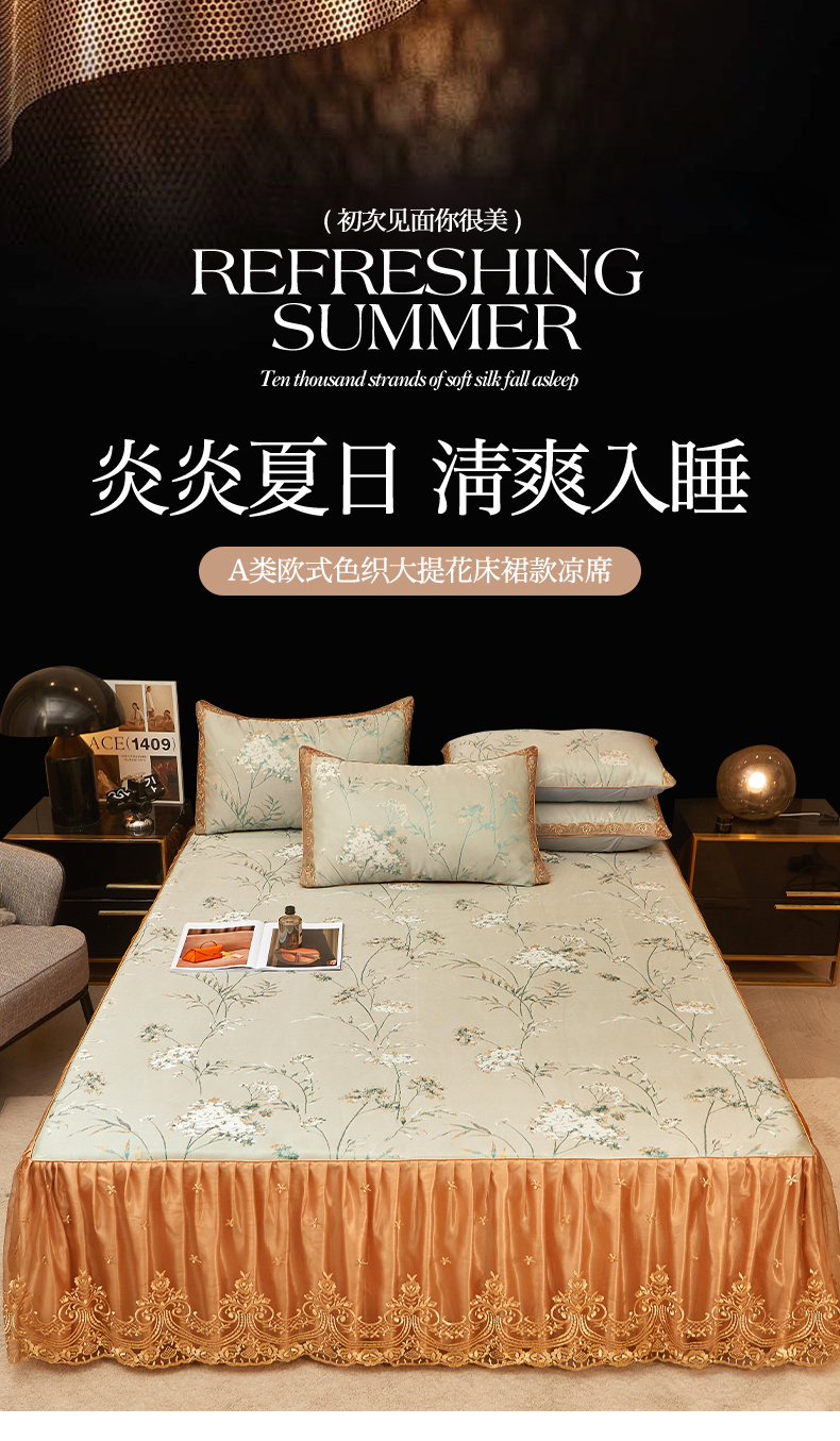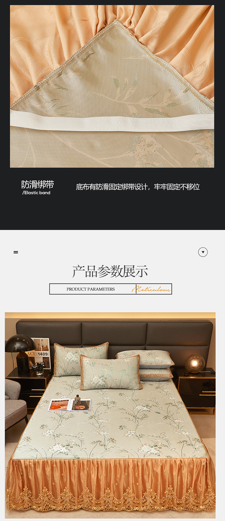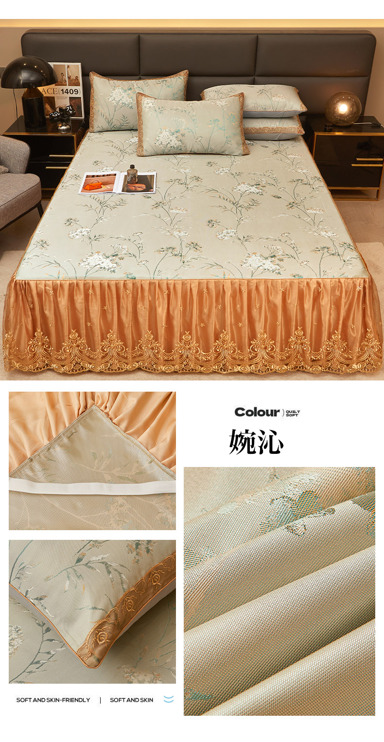 罗艺轩 2024新款欧式色织大提花床裙凉席 婉沁