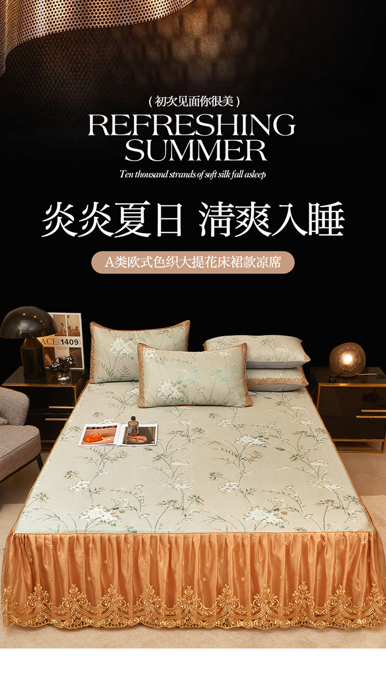 商品名称:罗艺轩 2024新款欧式色织大提花床裙凉席 婉沁