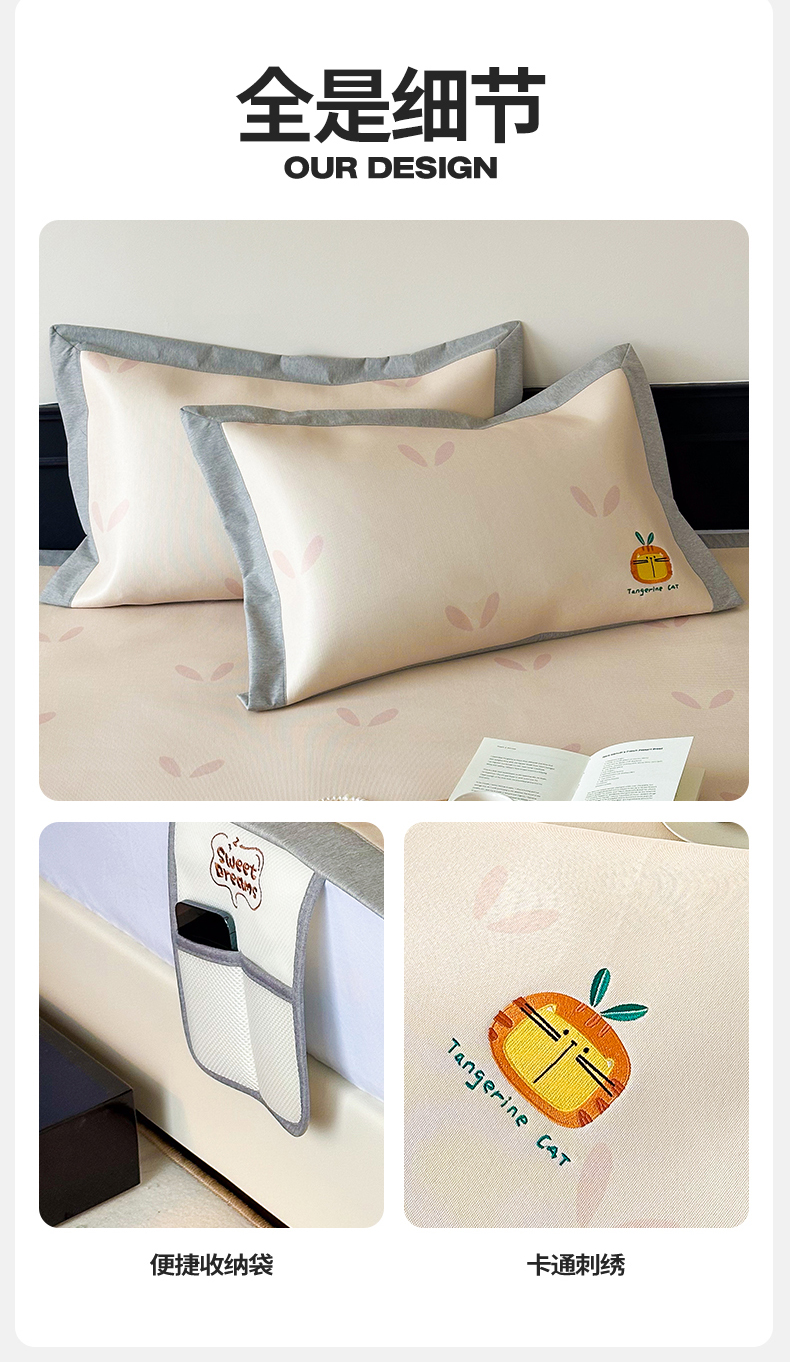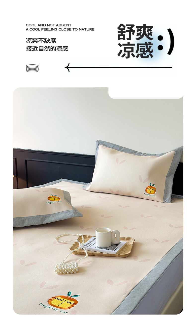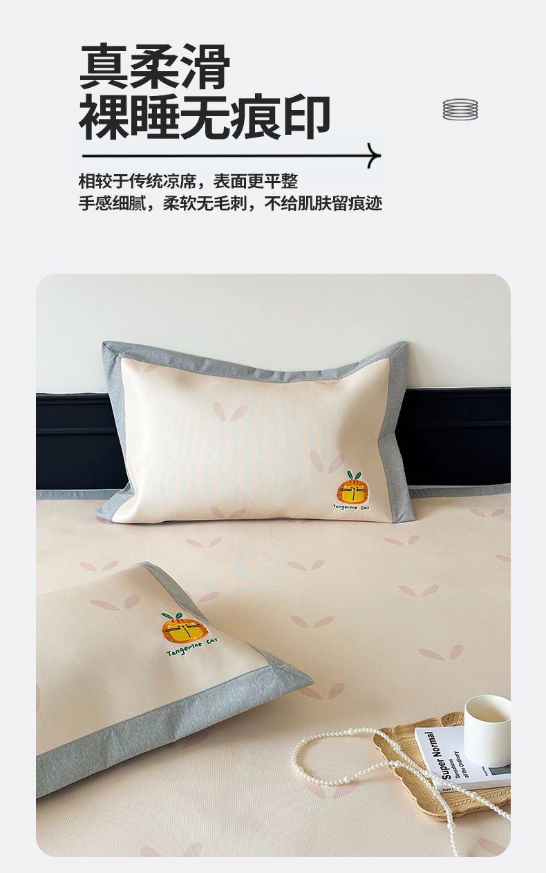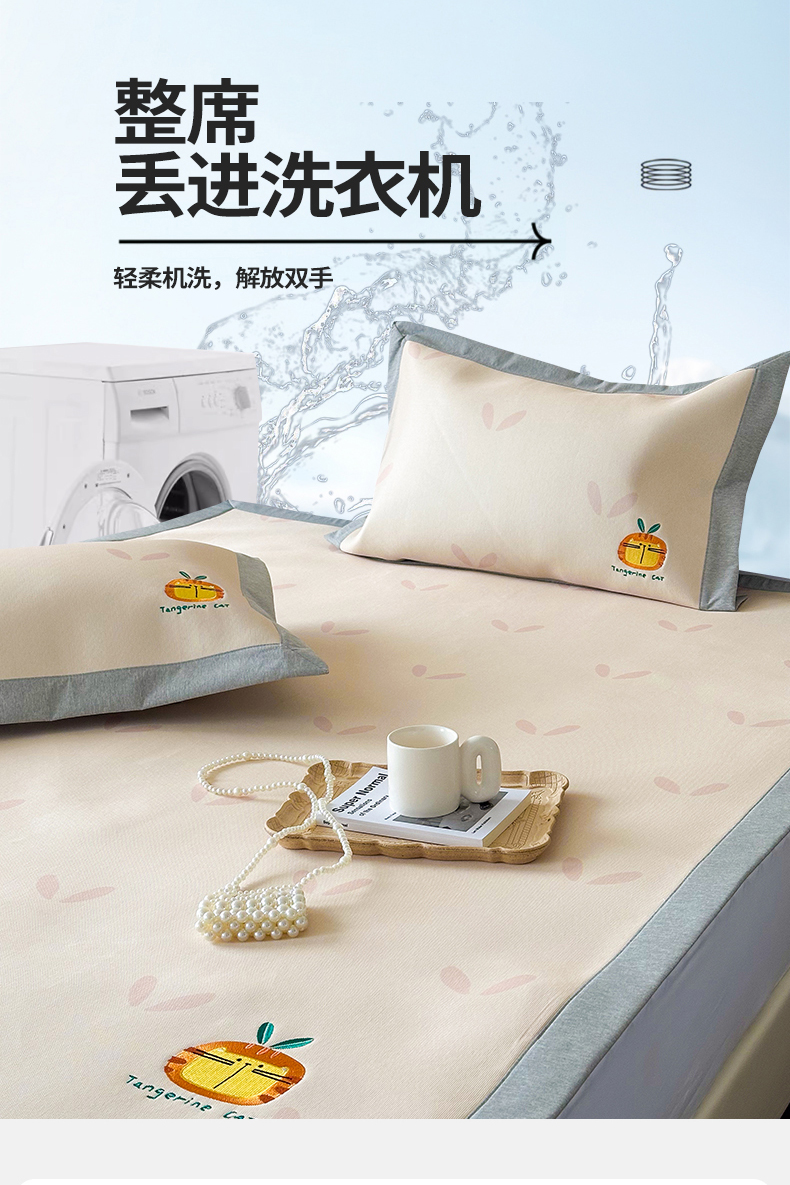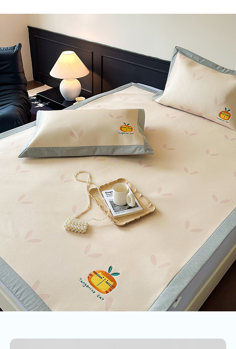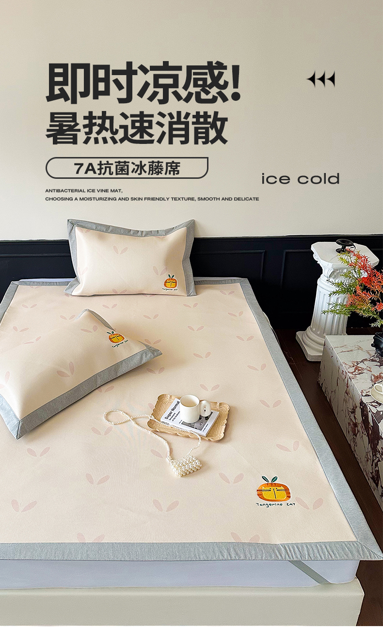 商品名称:甜梦 2024新款母婴级7A抗菌养生冰藤席影棚1—平席款 小草猫猫-平席款
