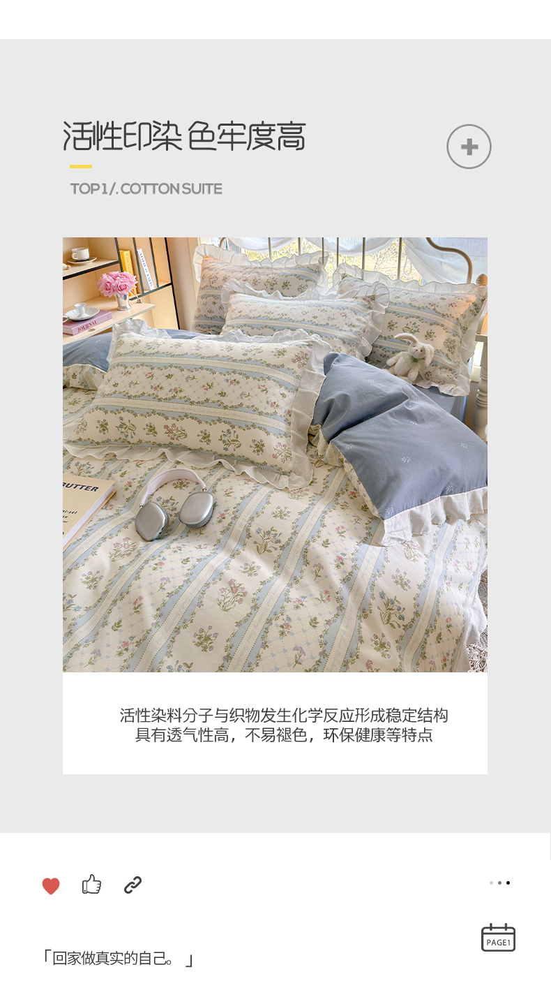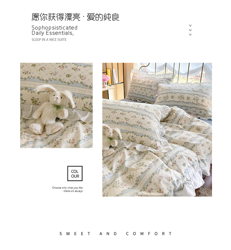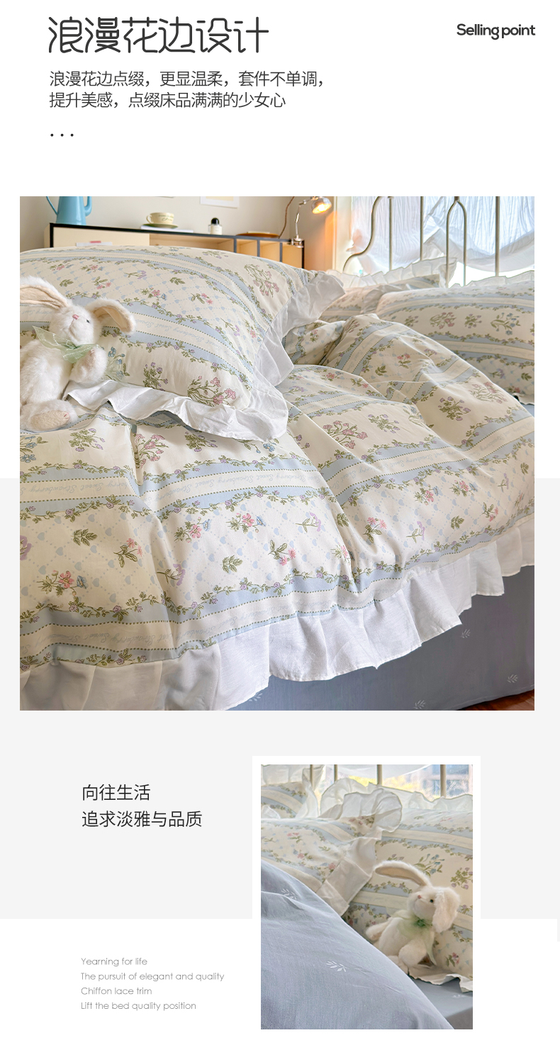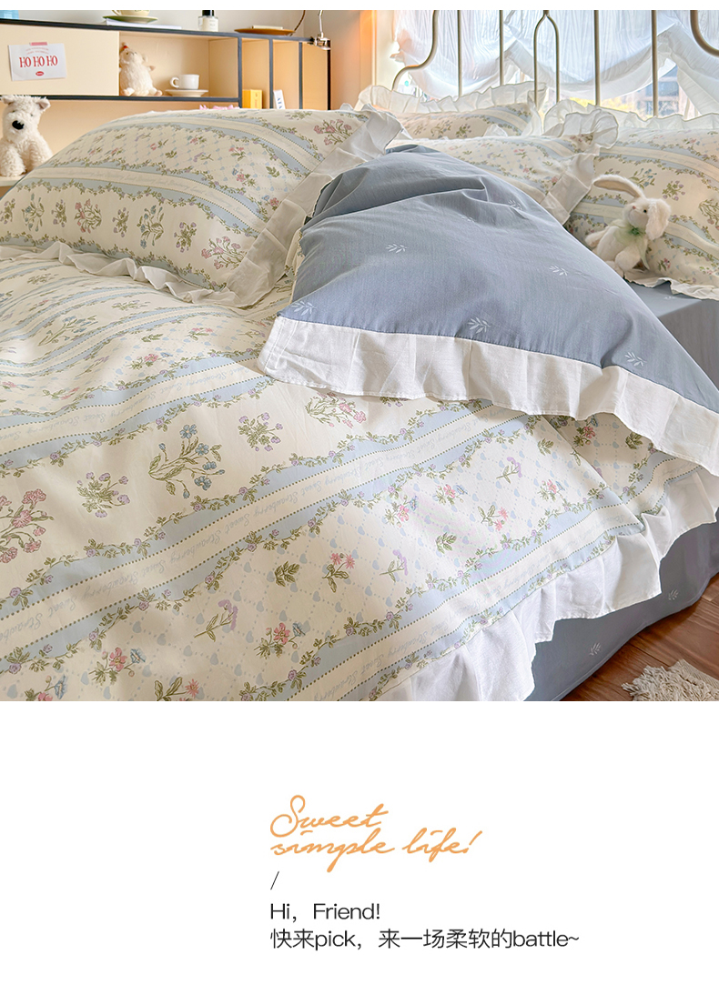 商品名称:瑞莱 2024新款13372全棉印花韩版花边四件套 韩版初享时光
