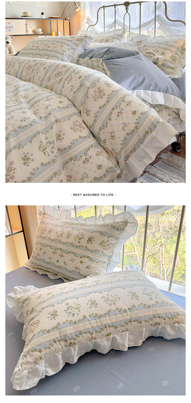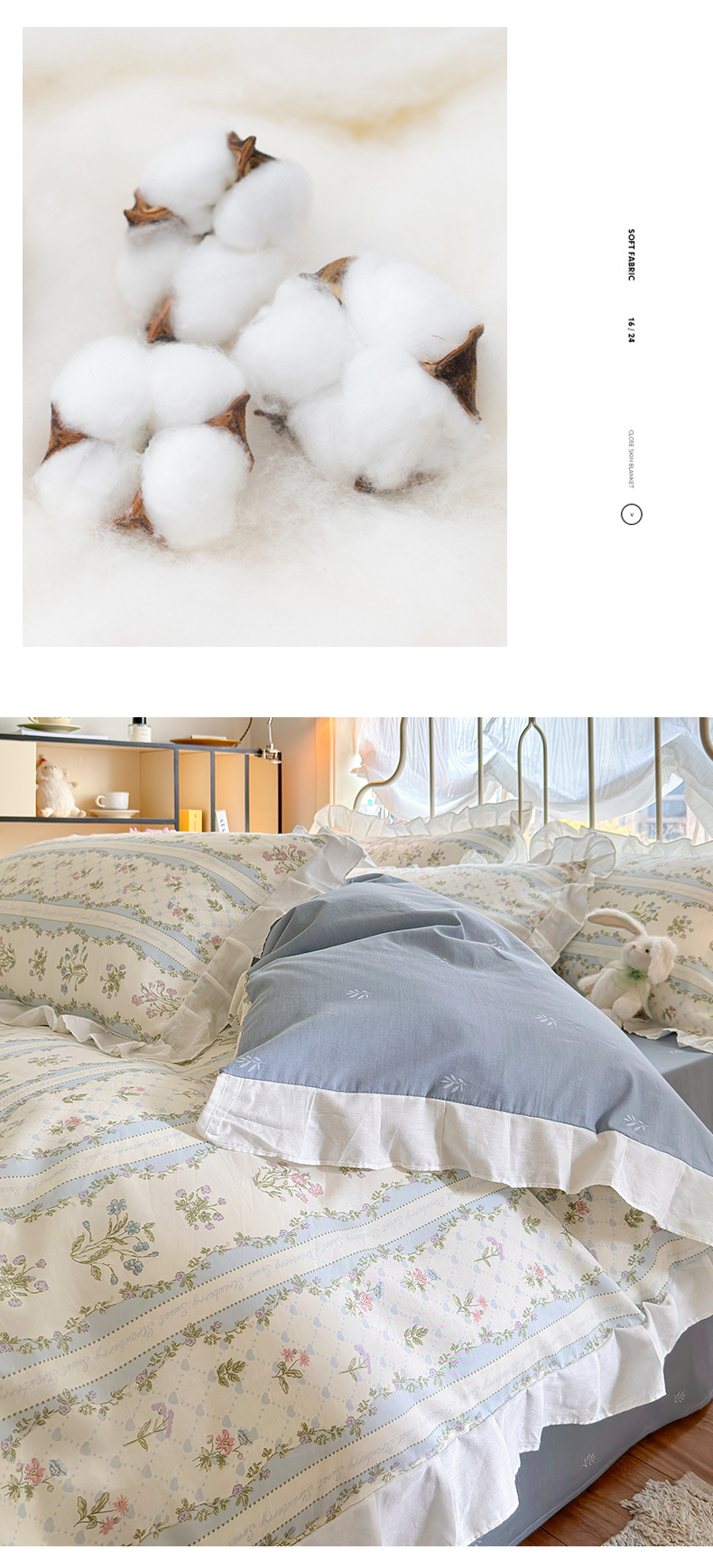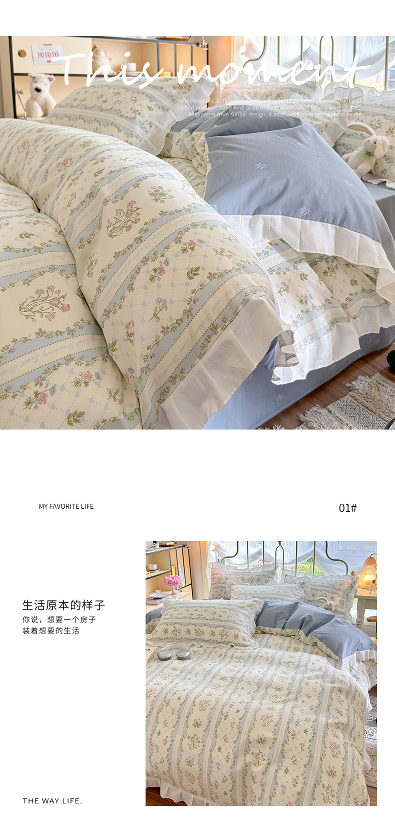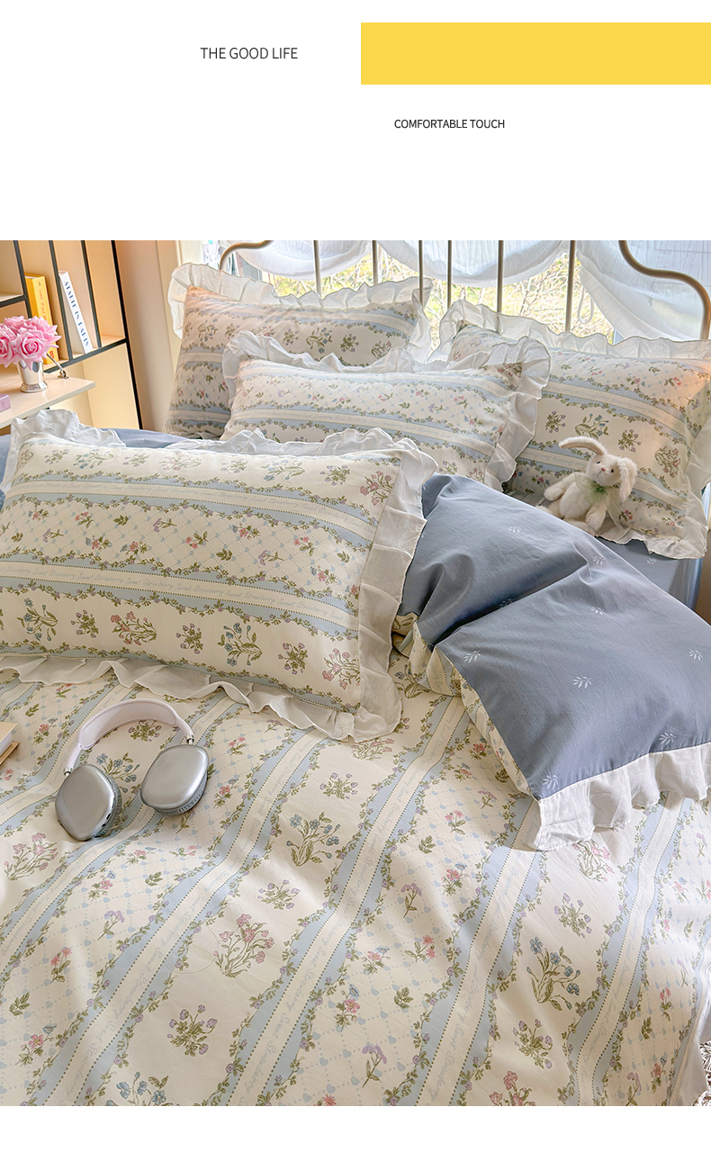 商品名称:瑞莱 2024新款13372全棉印花韩版花边四件套 韩版初享时光