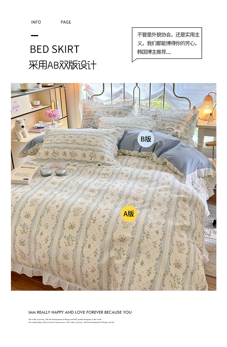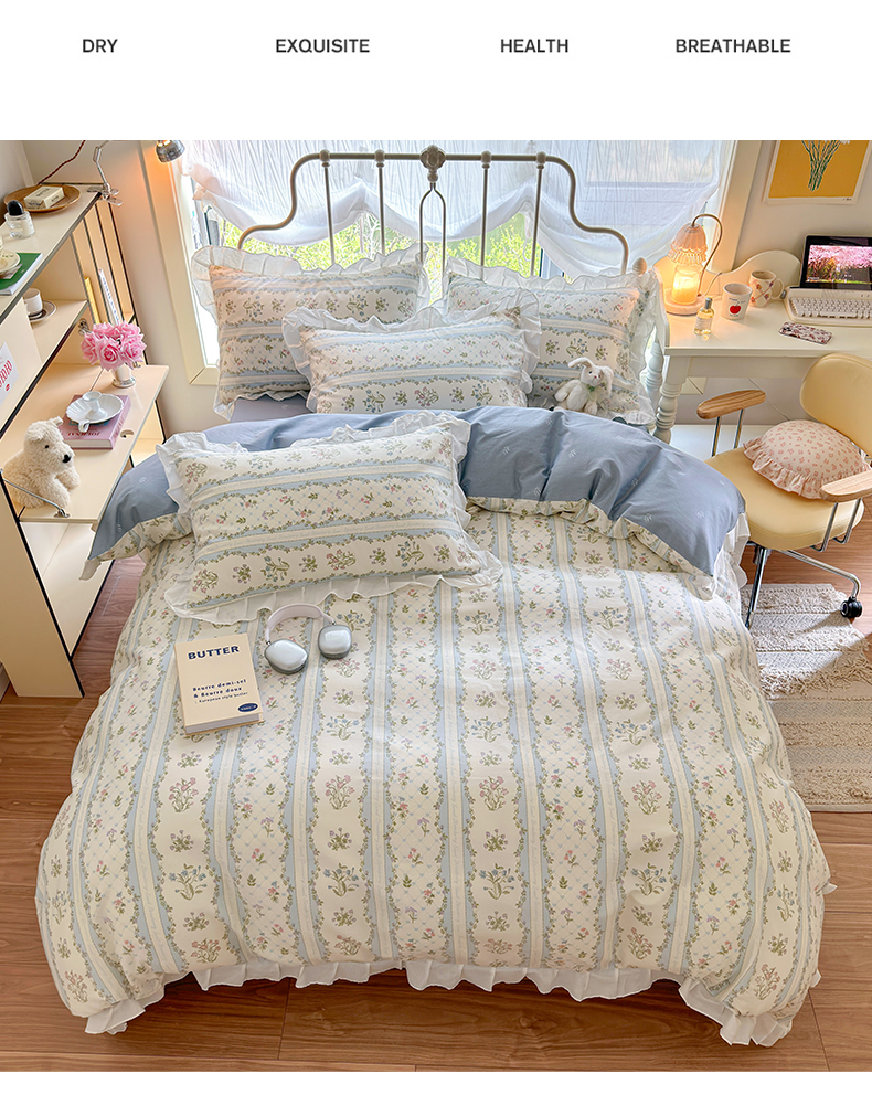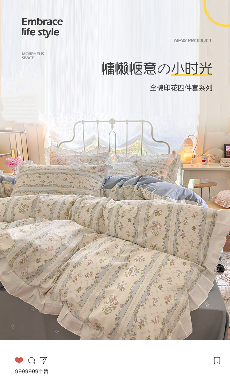 瑞莱 2024新款13372全棉印花韩版花边四件套 韩版初享时光