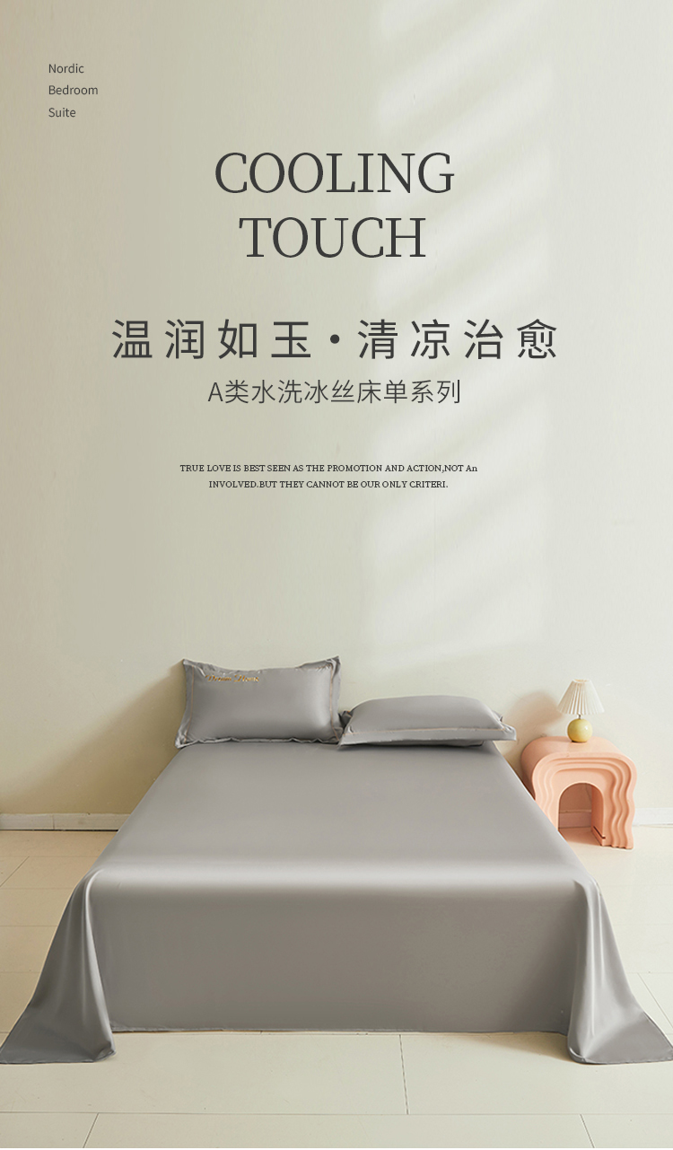 商品名称:七仙女家纺2025新款A类水洗真丝冰丝床单系列 梦幻家园-高级灰