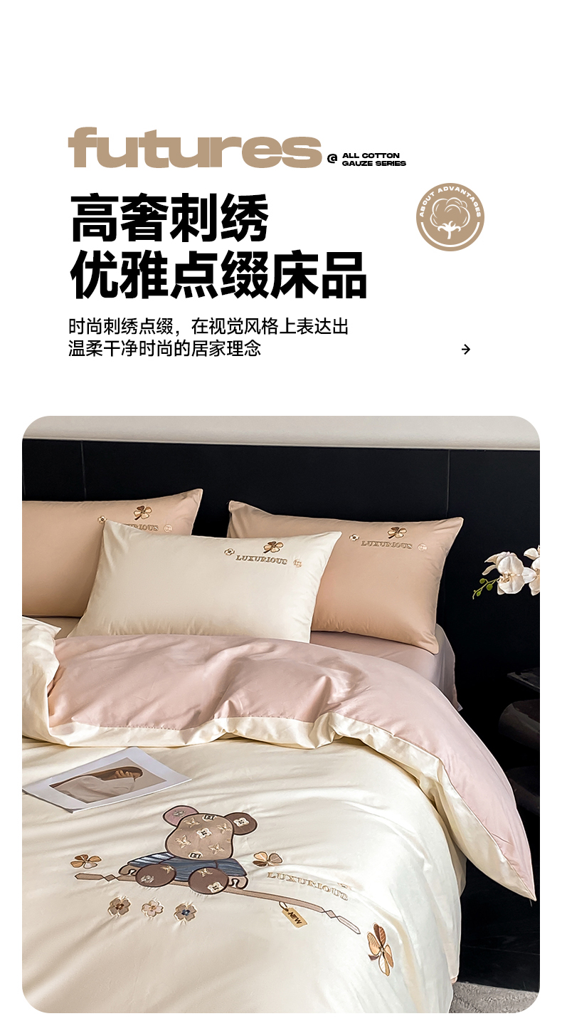 (总)澳梵家居 2024新款60s全棉刺绣四件套--【路易斯熊】系列