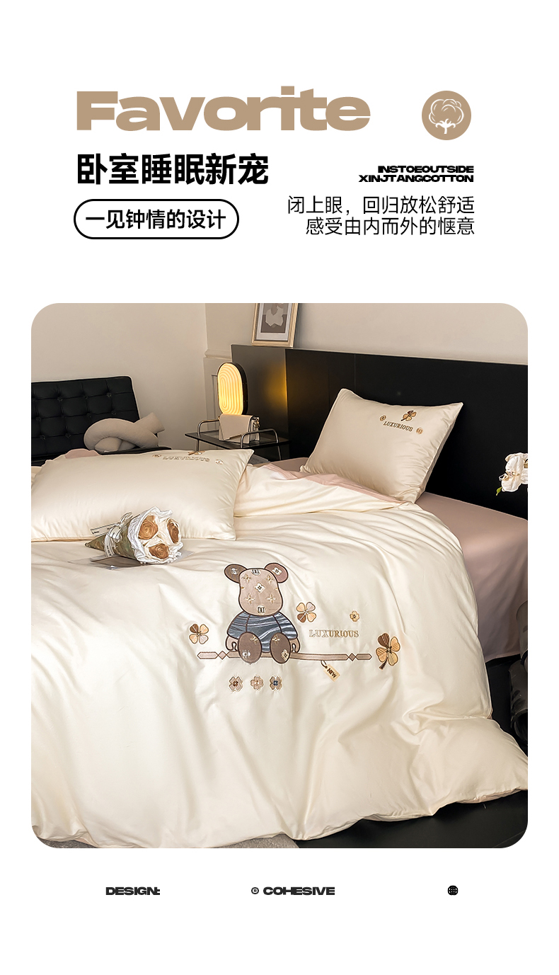 商品名称:(总)澳梵家居 2024新款60s全棉刺绣四件套--【路易斯熊】系列