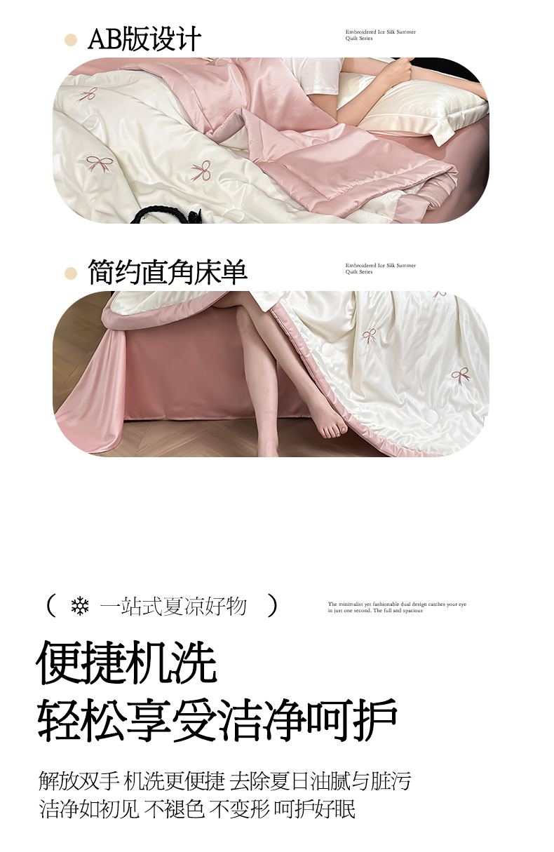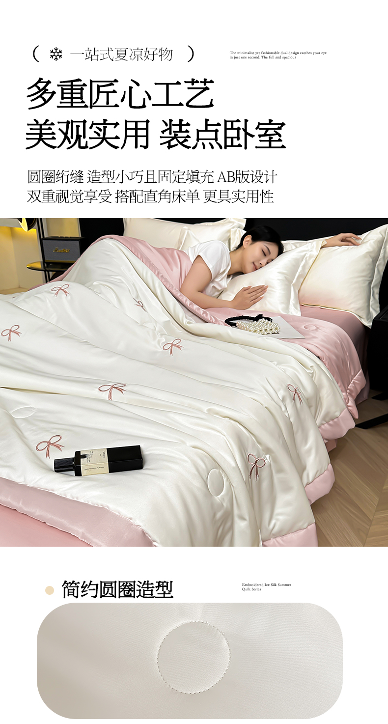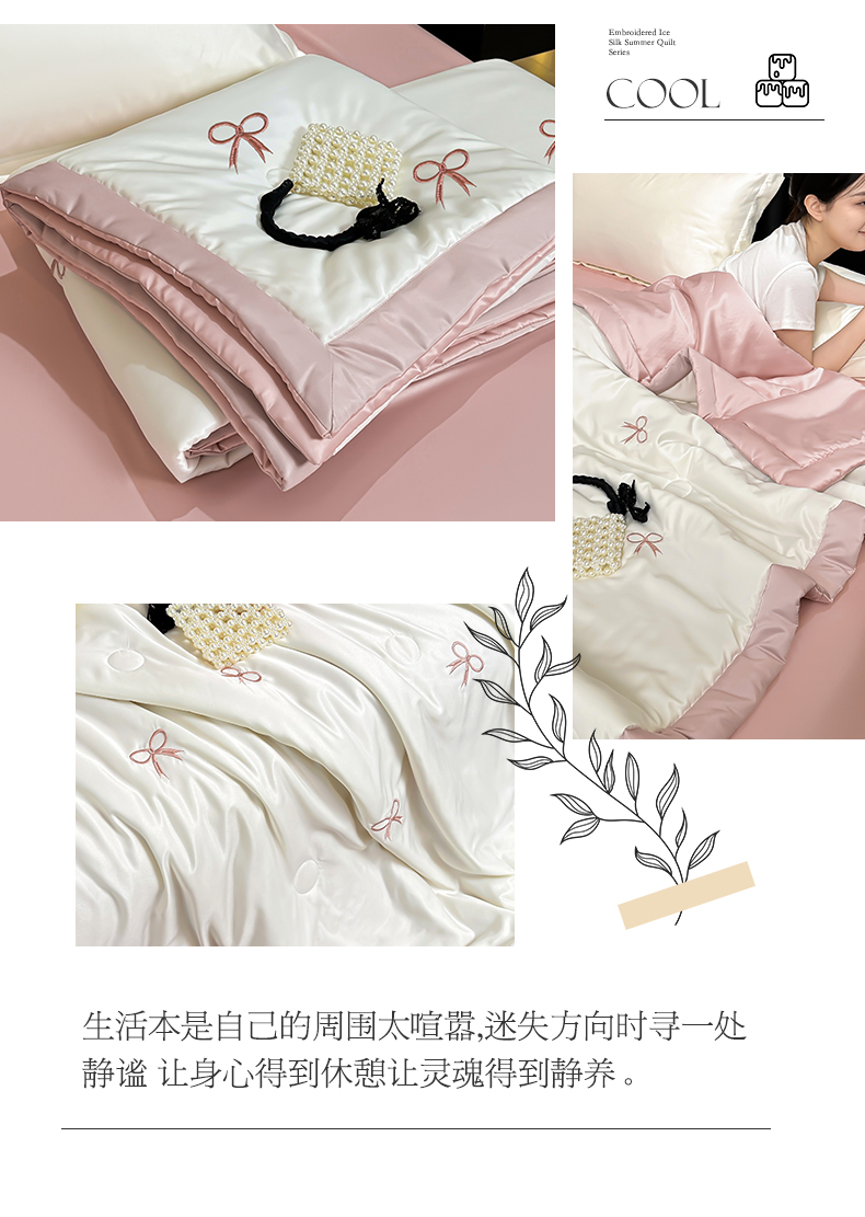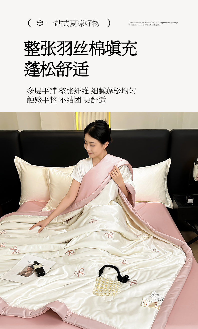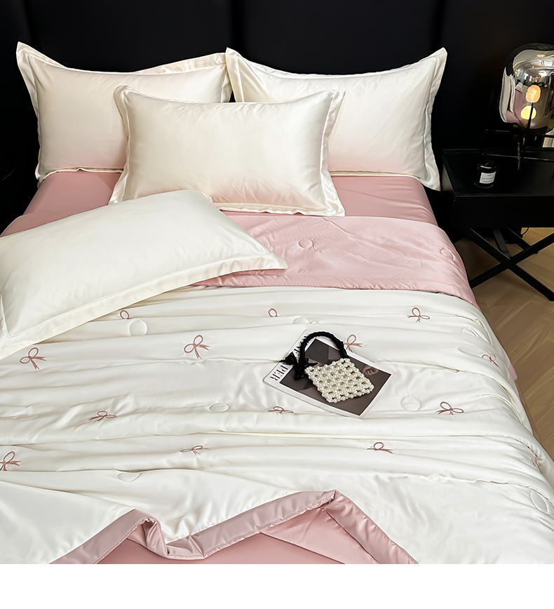 当前位置: 91家纺网 > 商品网购 > 床品套件 > 四件套 > 夏被四件套 > 满羽家纺 2024热款冰丝绸冰豆豆被夏被四件套凉感空调被(踩棉工艺)蝴蝶结-奶白粉