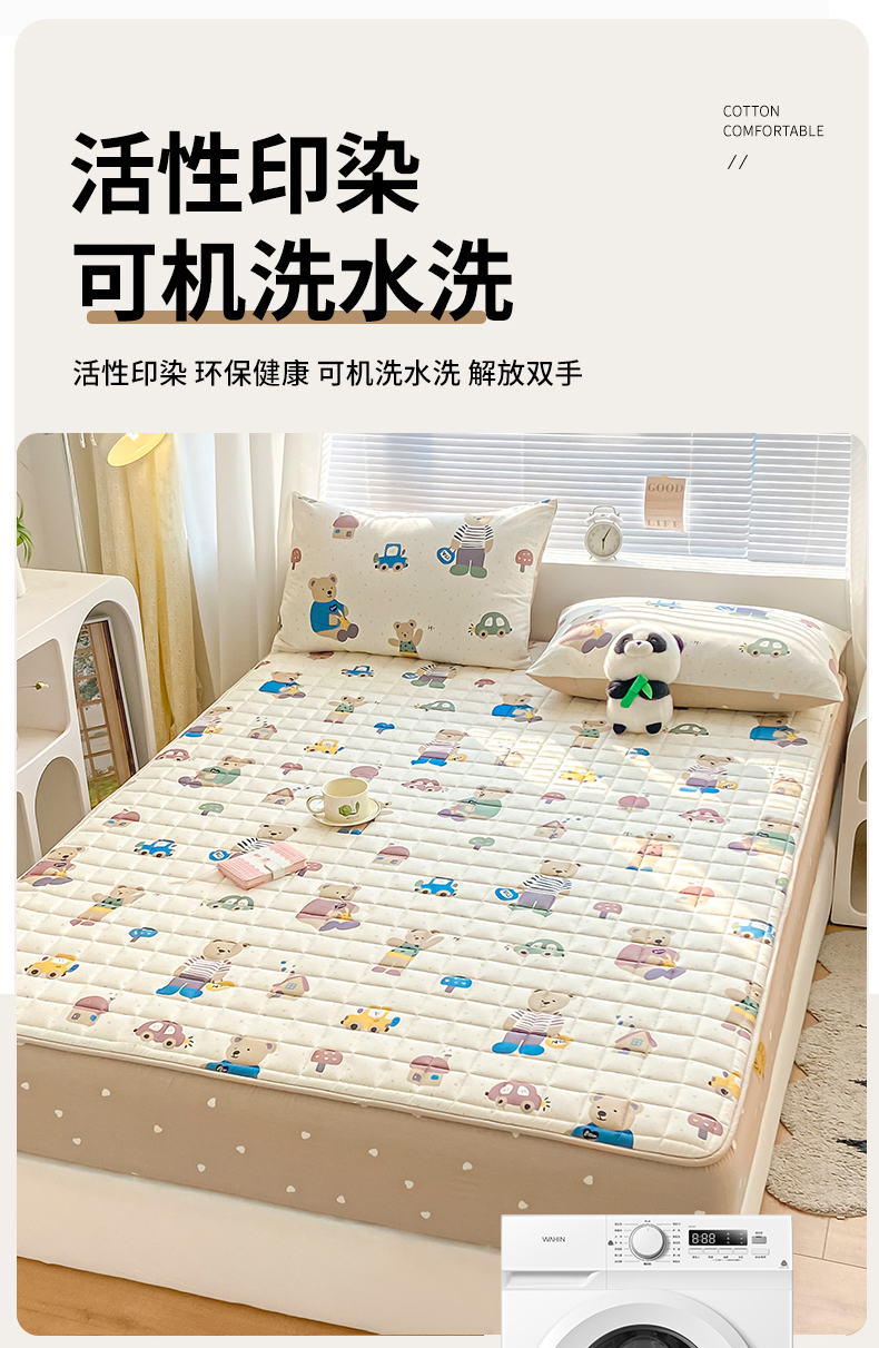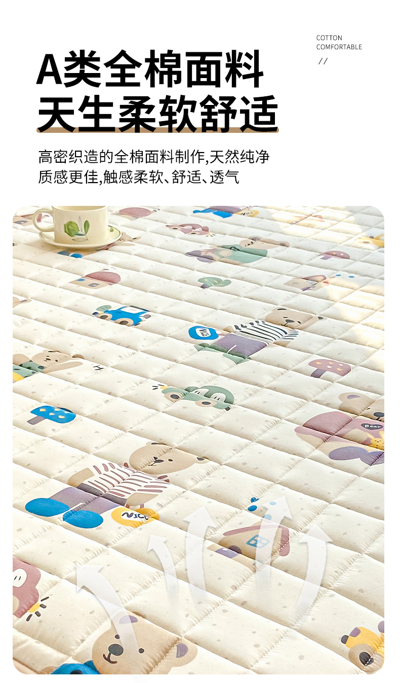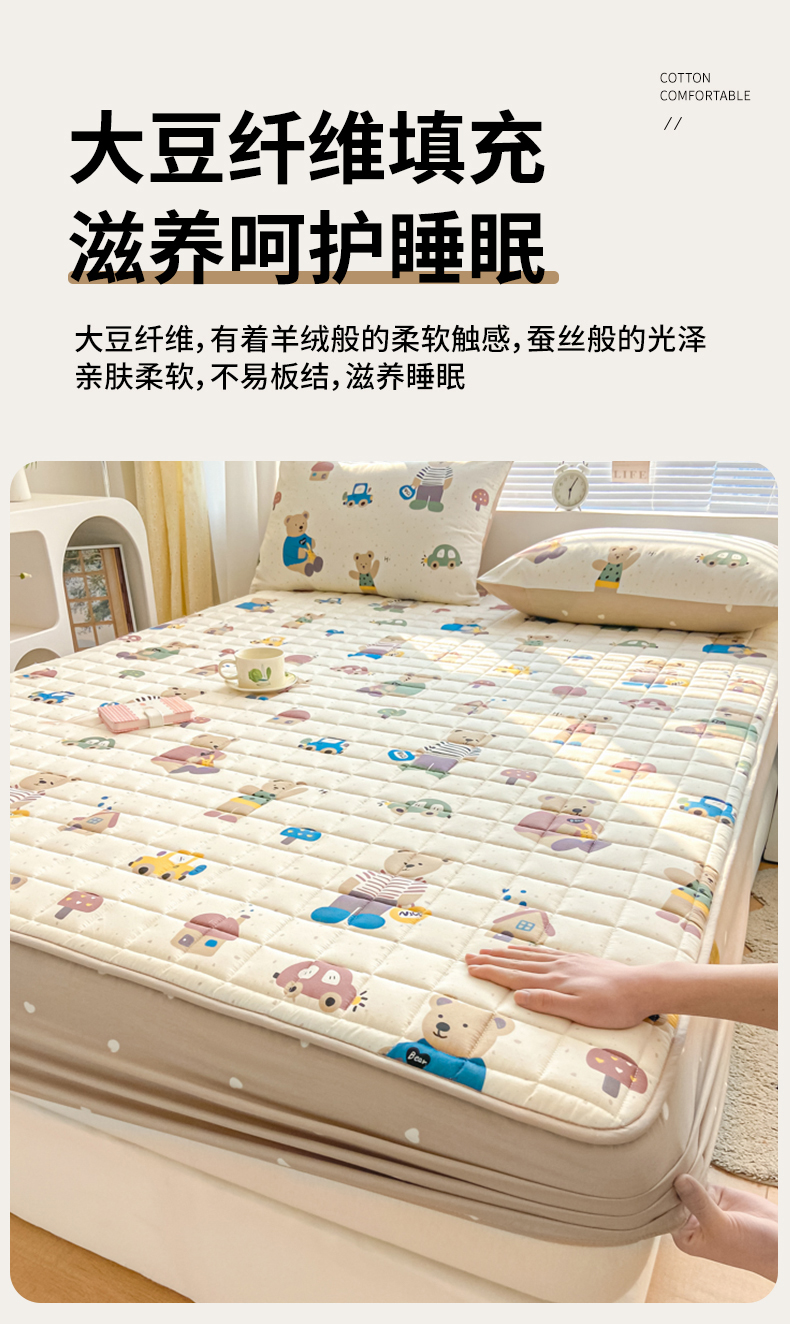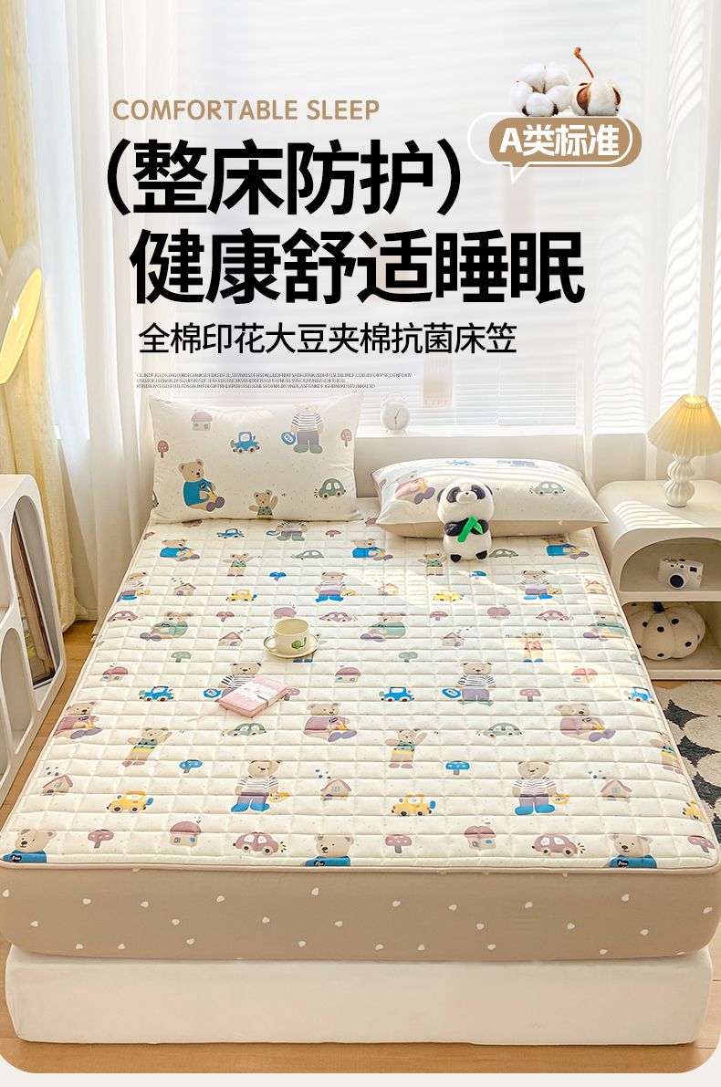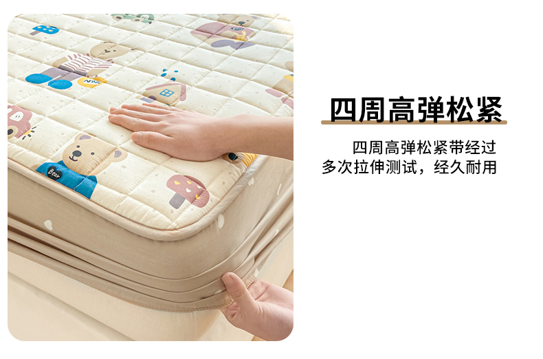 • 91家纺网 家纺一手货源 找家纺 鑫钰 2024新款全棉印花大豆夹棉床笠床垫保护罩 熊熊家园