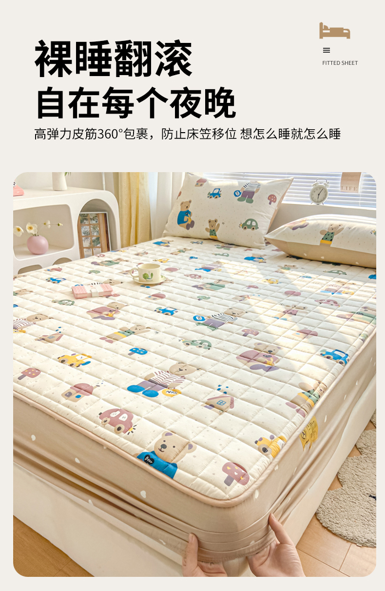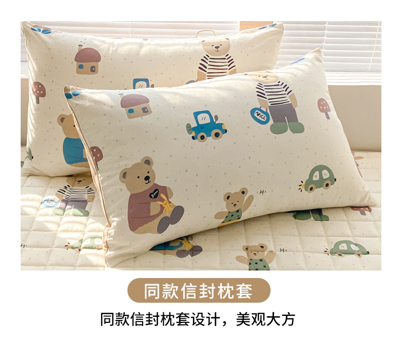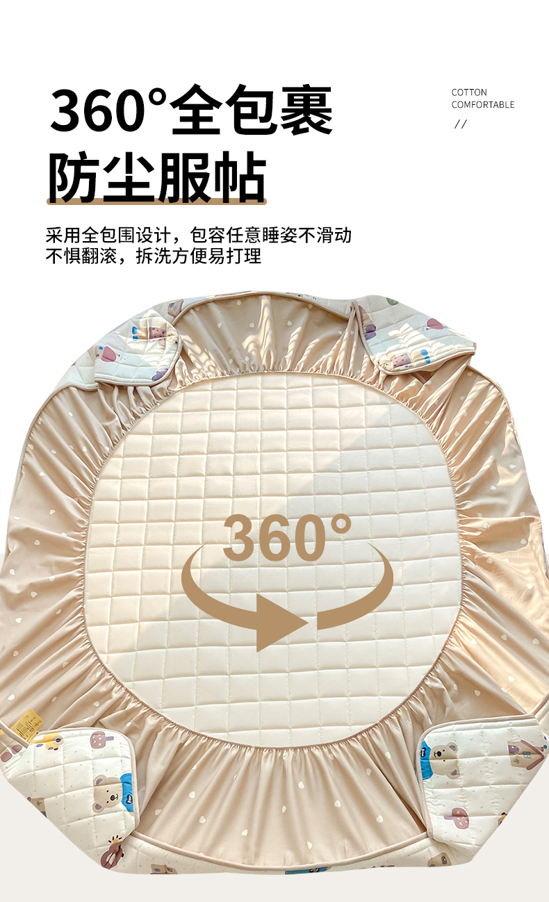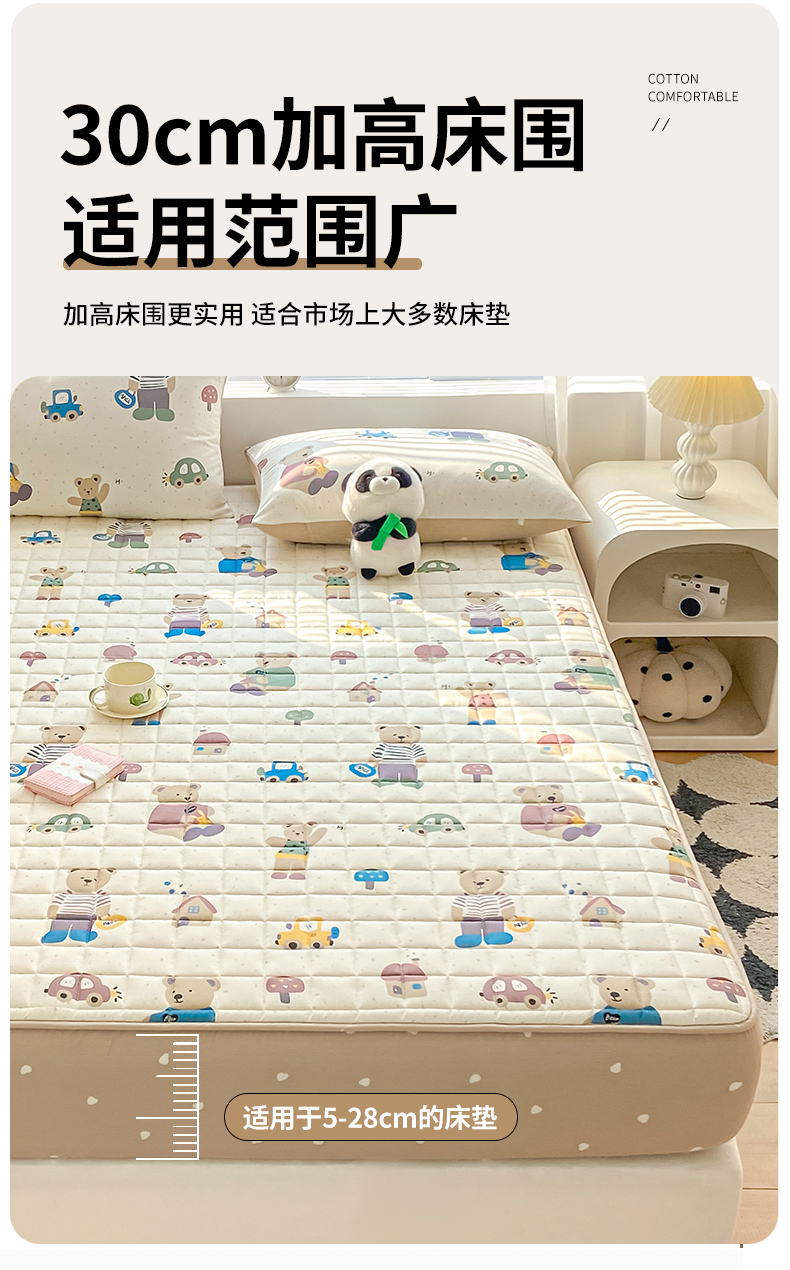 • 91家纺网 家纺一手货源 找家纺 鑫钰 2024新款全棉印花大豆夹棉床笠床垫保护罩 熊熊家园