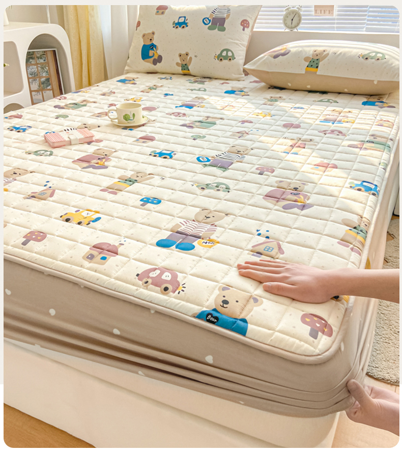 鑫钰 2024新款全棉印花大豆夹棉床笠床垫保护罩 熊熊家园