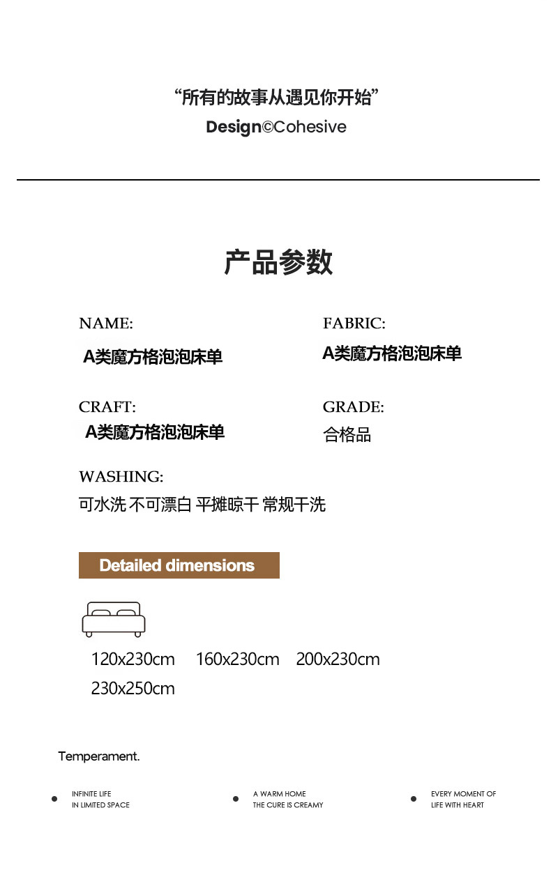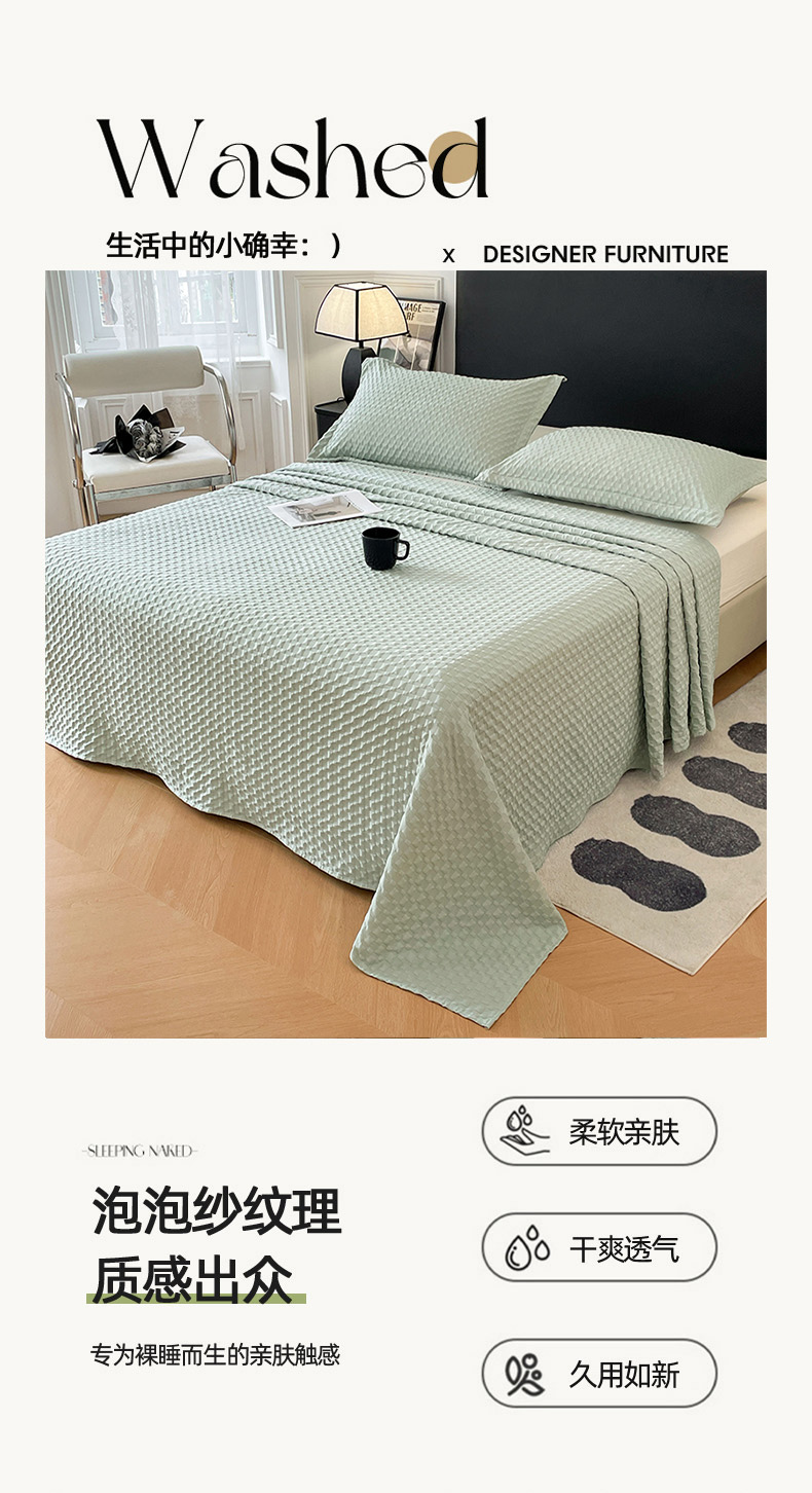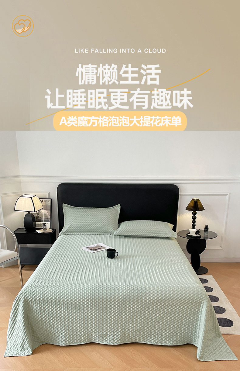 商品名称:圣比熊 2025新款魔方格泡泡大提花床单华夫格床垫保护套床护垫 魔方格泡泡-云川绿