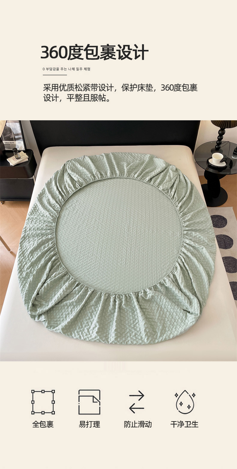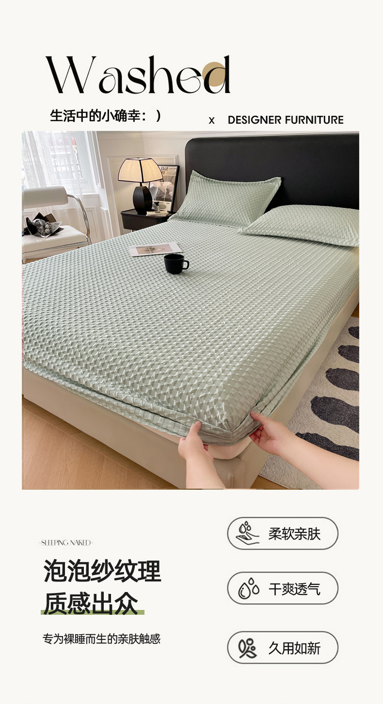 商品名称:梦舒羽 2025新款魔方格泡泡大提花床笠华夫格床垫保护套 魔方格泡泡-云川绿