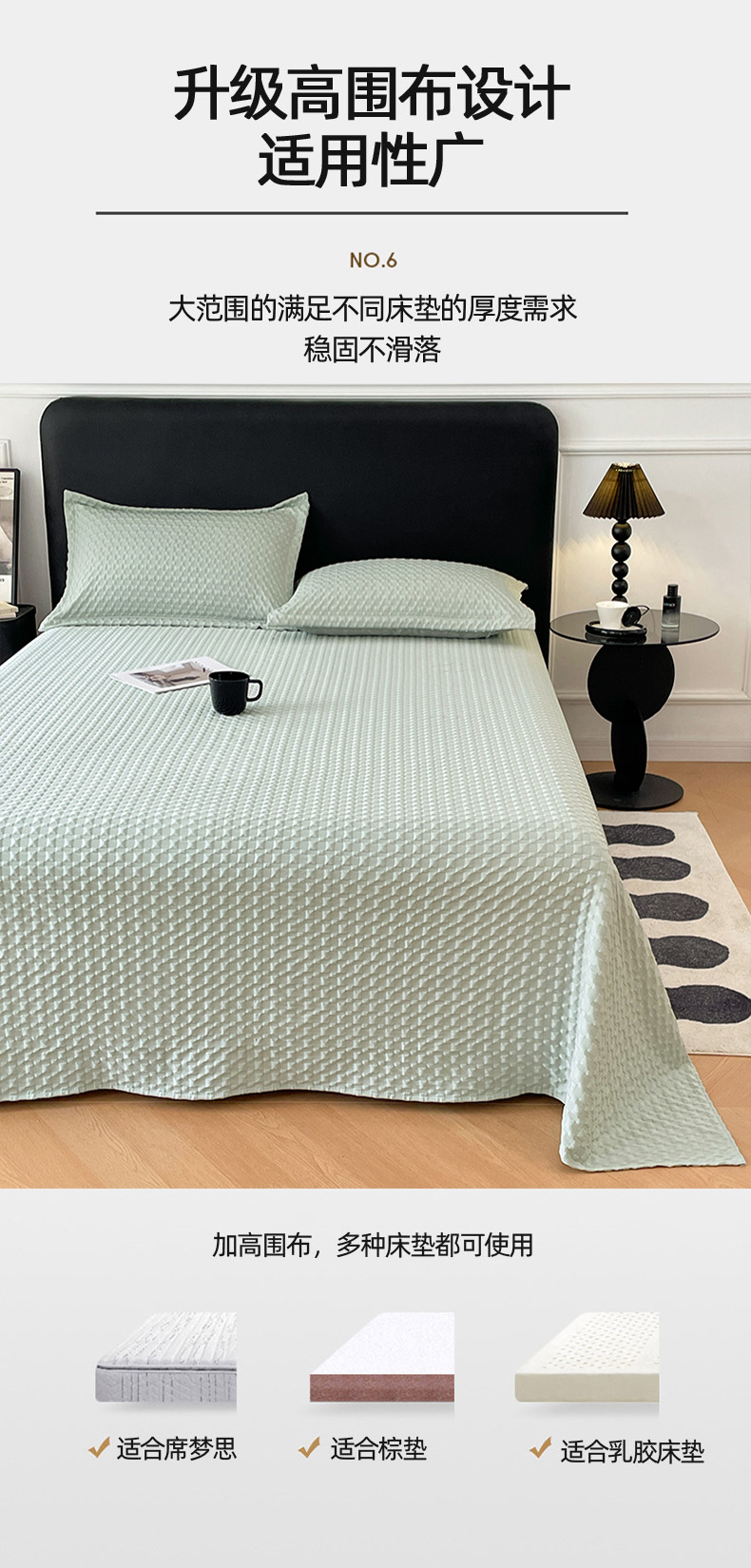 商品名称:梦舒羽 2025新款魔方格泡泡大提花床单华夫格床垫保护套床护垫 魔方格泡泡-云川绿