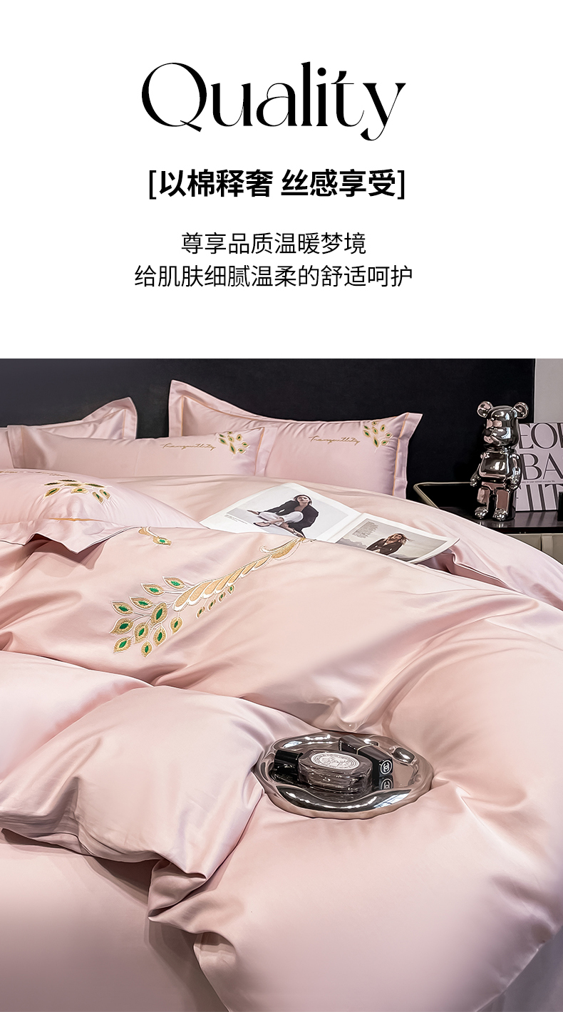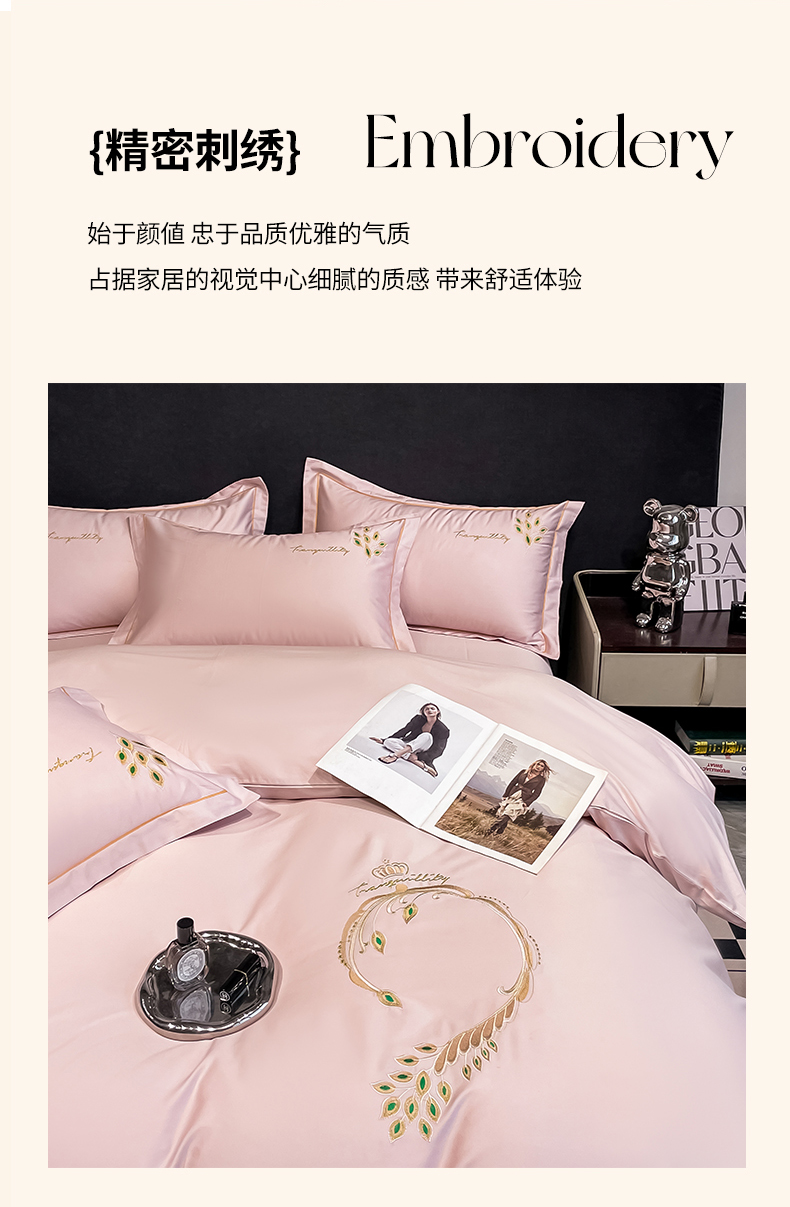 当前位置: 91家纺网 > 商品网购 > 床品套件 > 四件套 > 长绒棉四件套 > 艾迪尚家纺 2025新款120S刺绣长绒棉四六件套 孔雀-豆沙粉