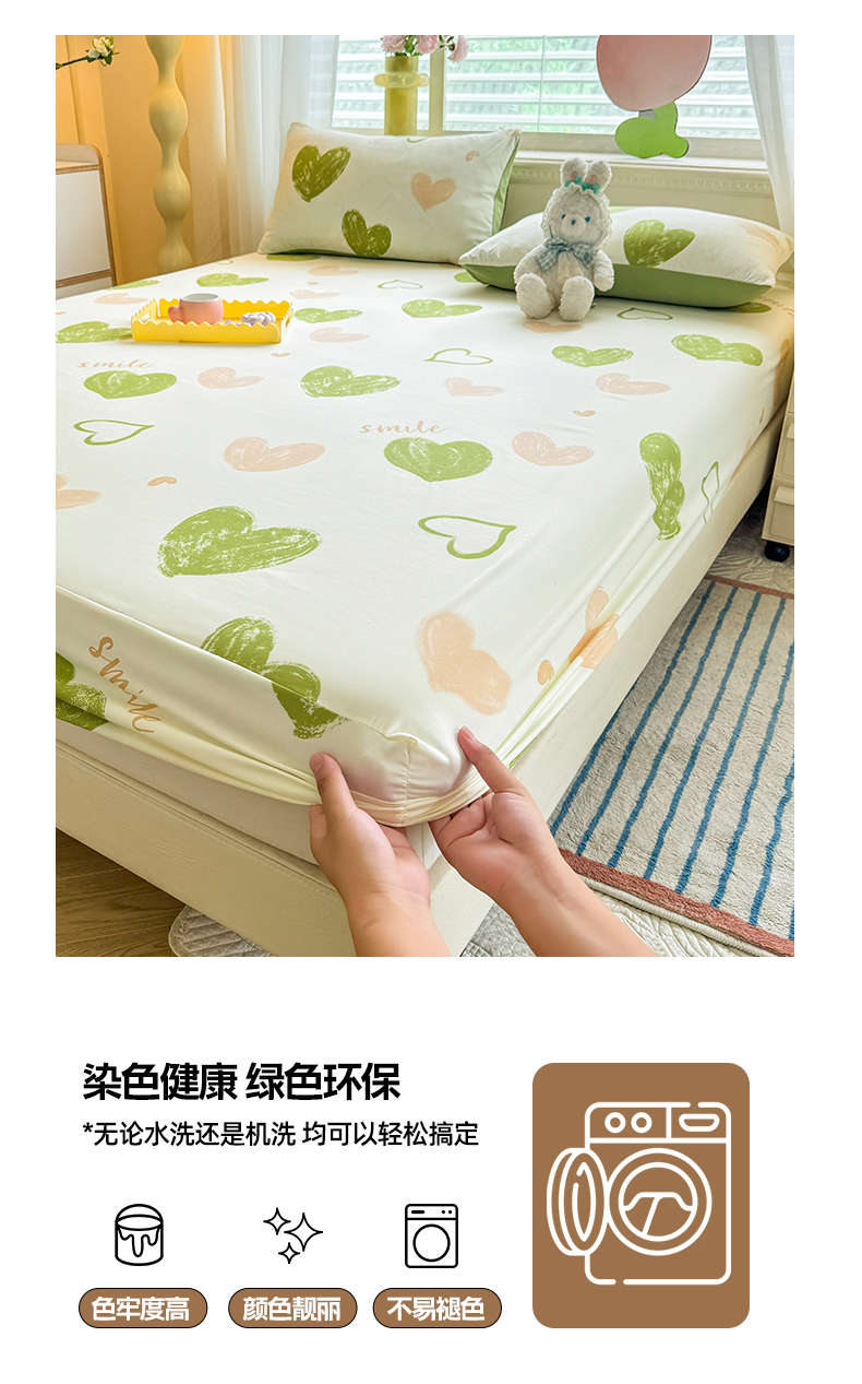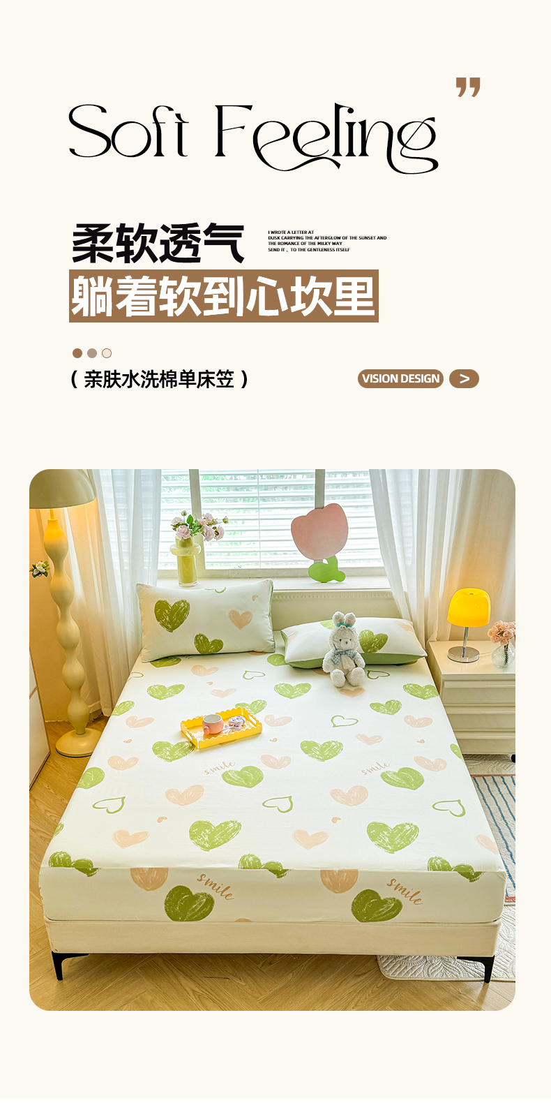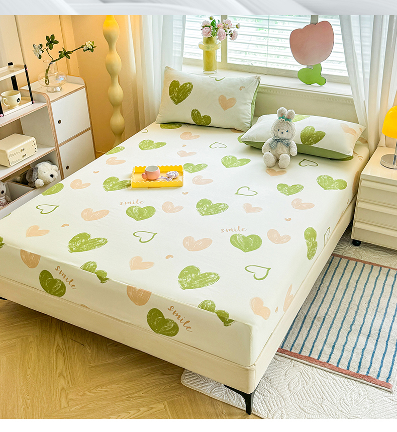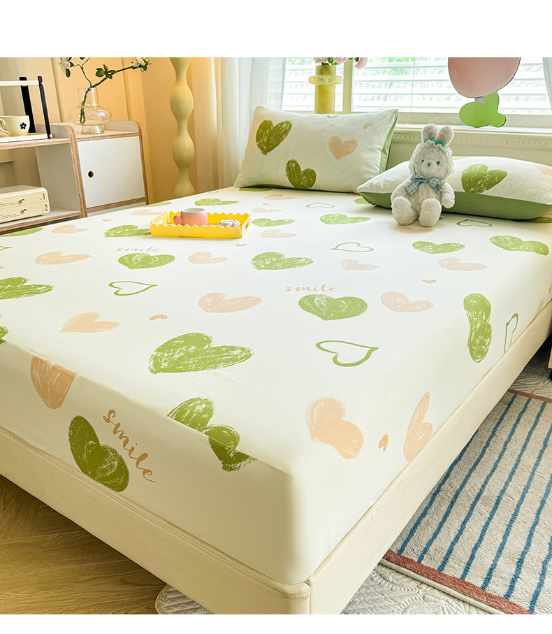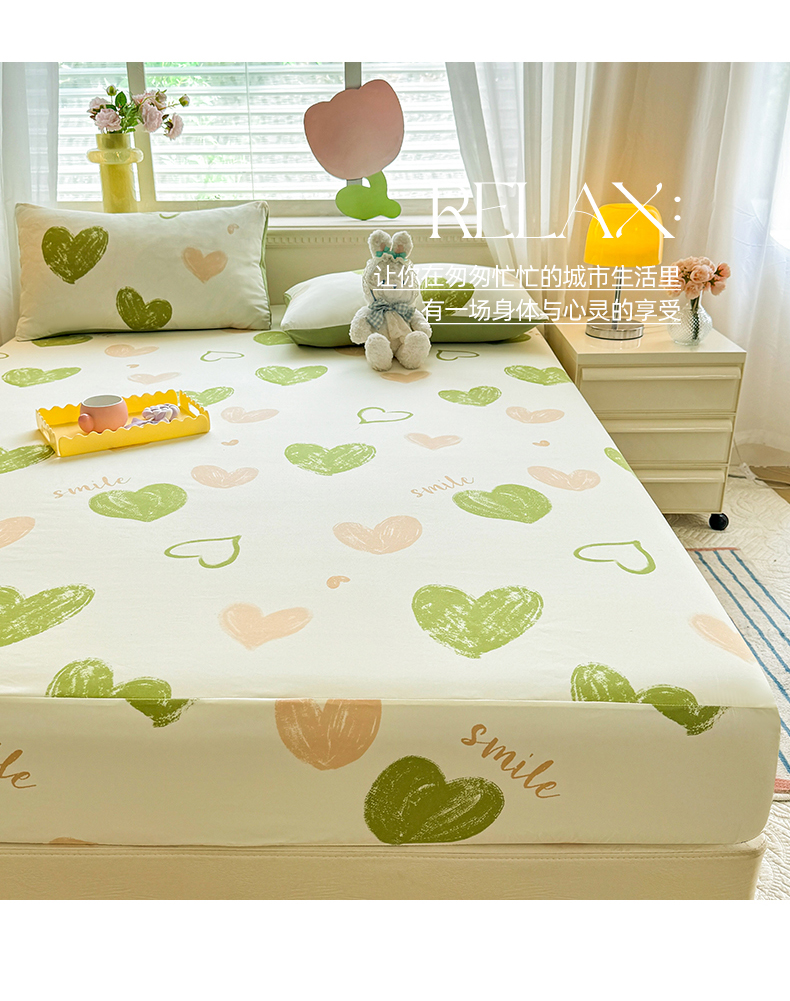 商品名称:妖妖家纺 2024新款超柔软糯亲肤水洗棉单床笠 涂鸦爱心