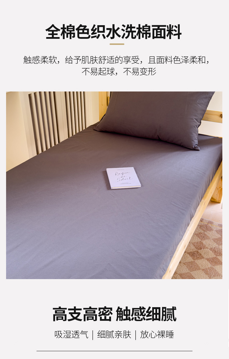 • 91家纺网 家纺一手货源 找家纺 金丝鸟家纺 2024新款A类全棉色织水洗棉单床笠系列(学生床) 深灰