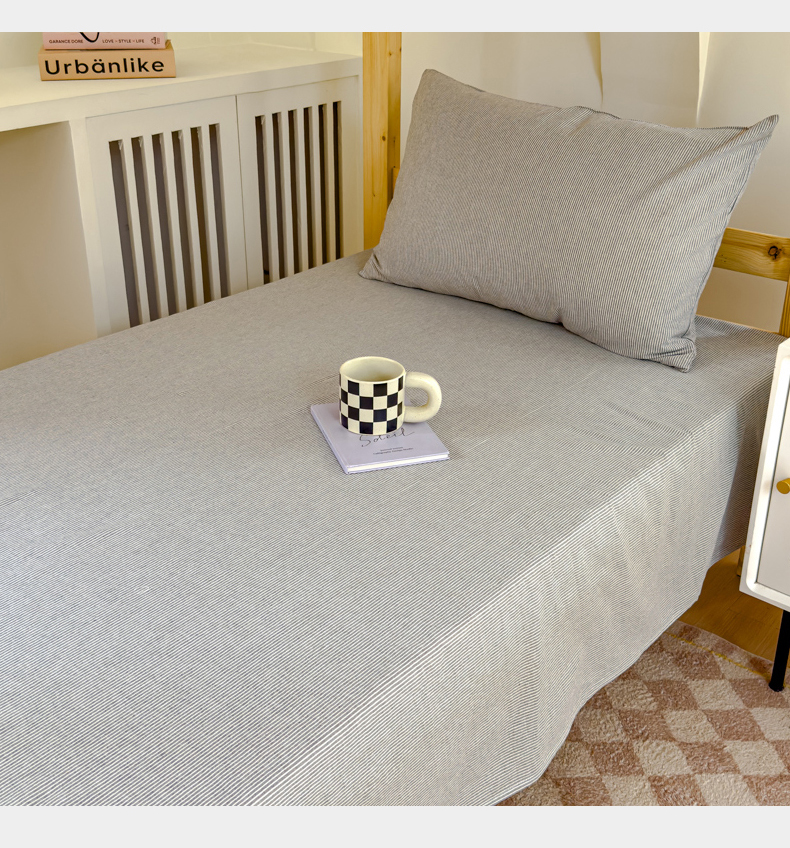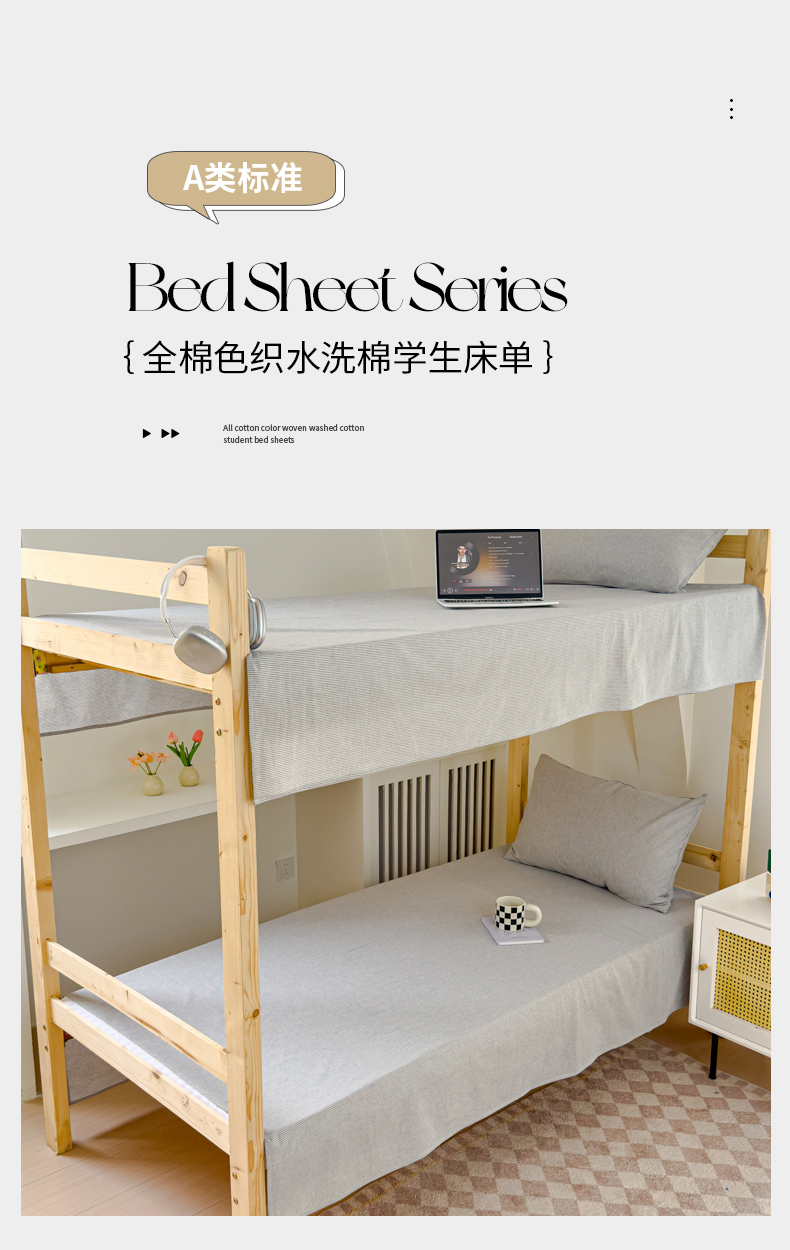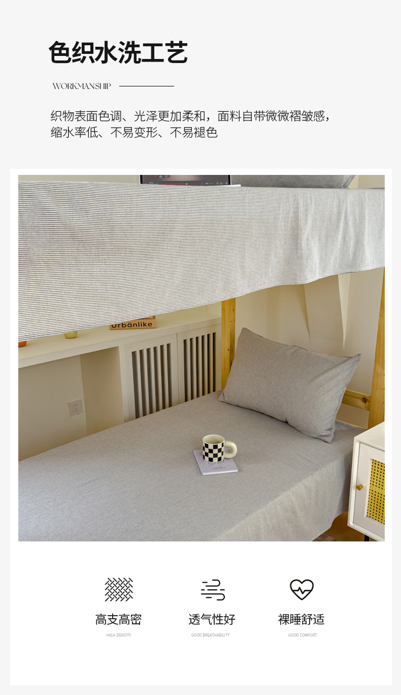 • 91家纺网 家纺一手货源 找家纺 金丝鸟家纺 2024新款A类全棉色织水洗棉单床单系列(学生床) 灰细条