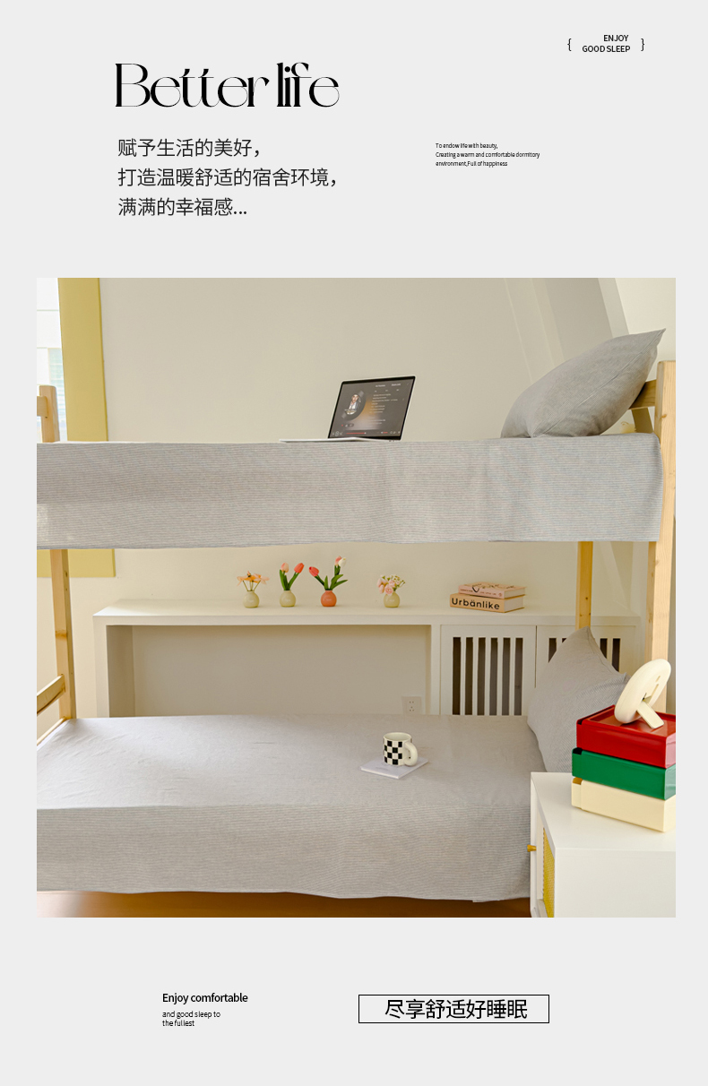 金丝鸟家纺 2024新款A类全棉色织水洗棉单床单系列(学生床) 灰细条
