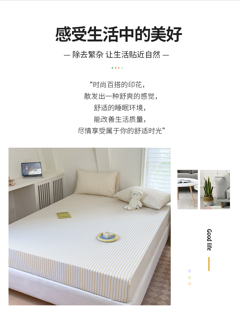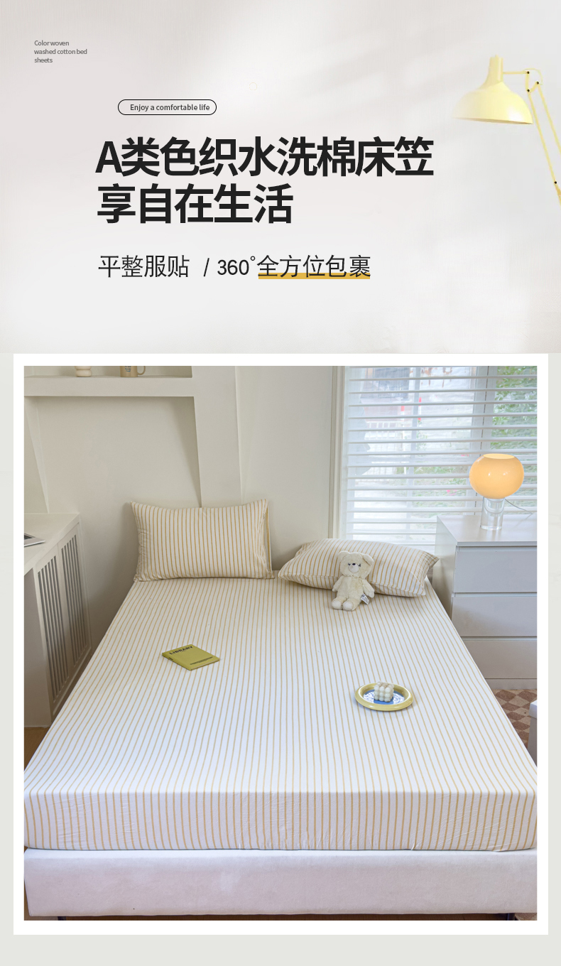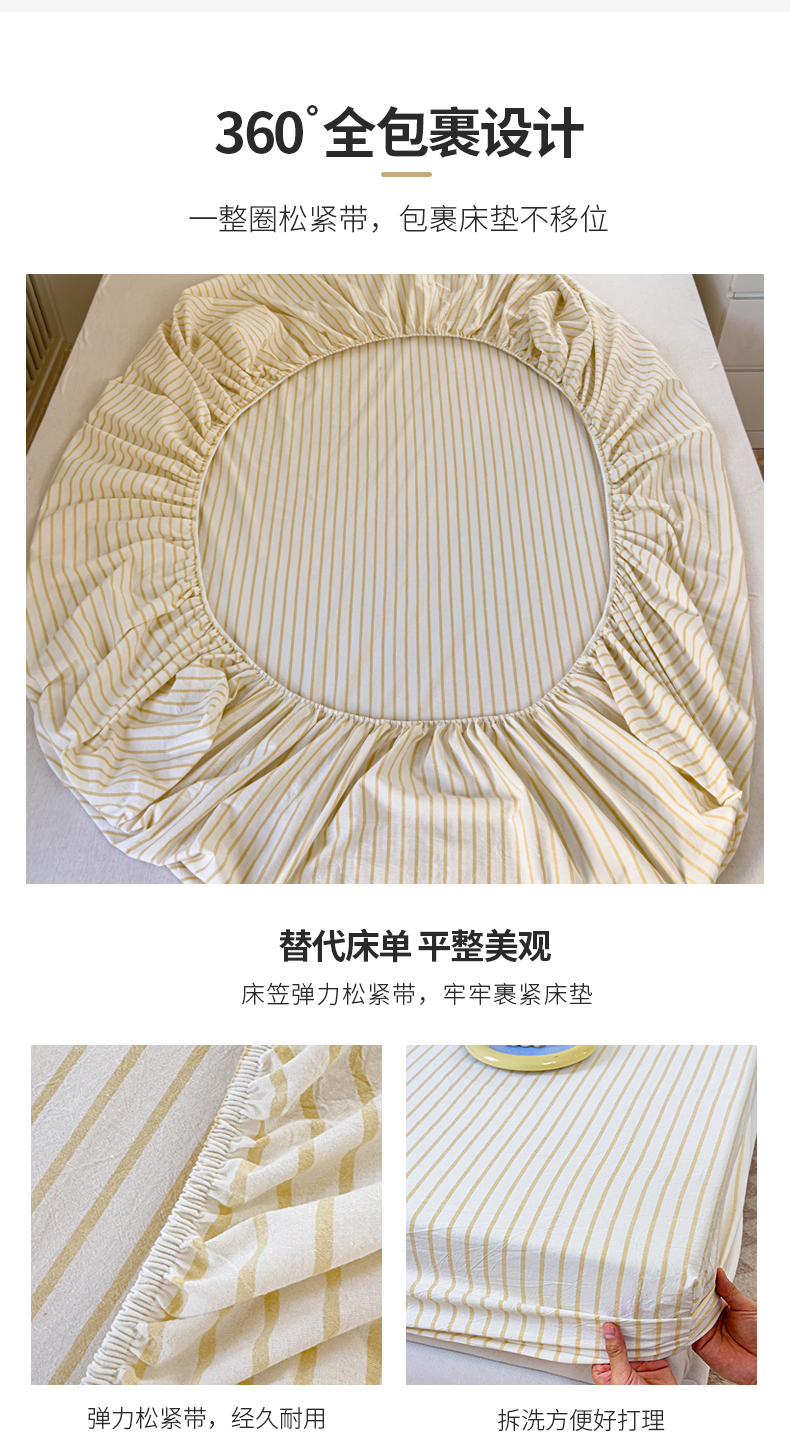 金丝鸟家纺 2024新款A类全棉色织水洗棉床笠系列 黄色中条