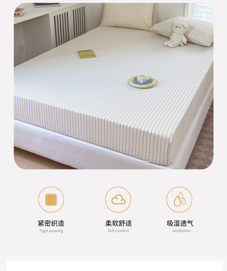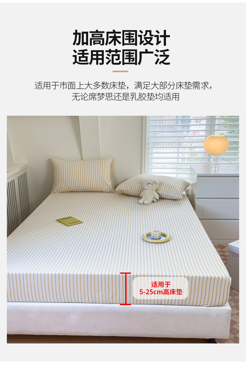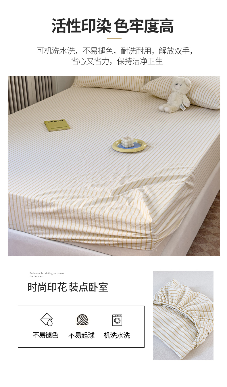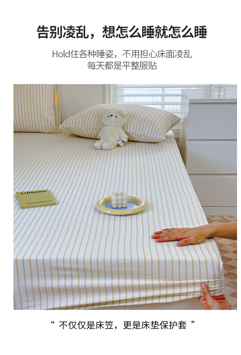 金丝鸟家纺 2024新款A类全棉色织水洗棉床笠系列 黄色中条
