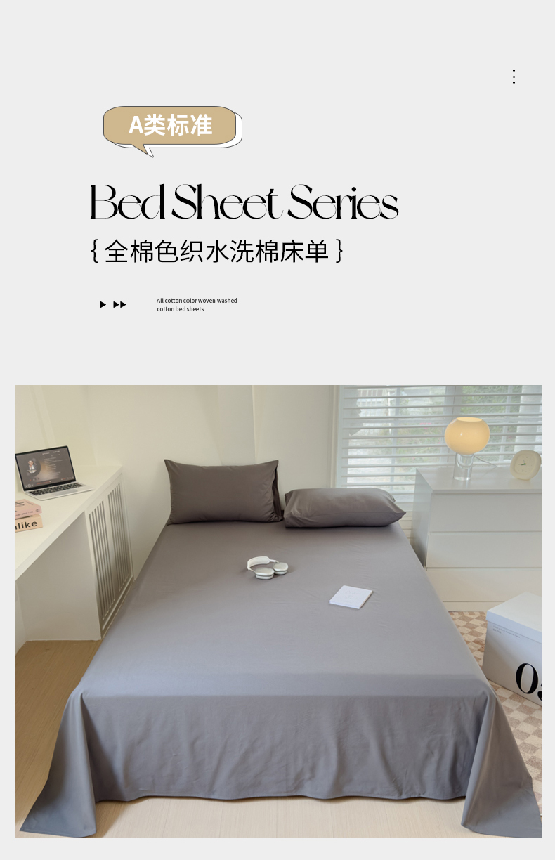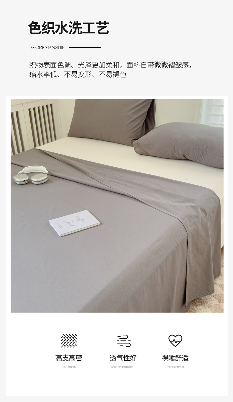 • 91家纺网 家纺一手货源 找家纺 金丝鸟家纺 2024新款A类全棉色织水洗棉单床单系列 深灰