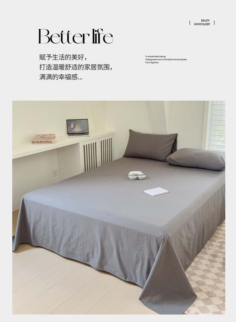 金丝鸟家纺 2024新款A类全棉色织水洗棉单床单系列 深灰