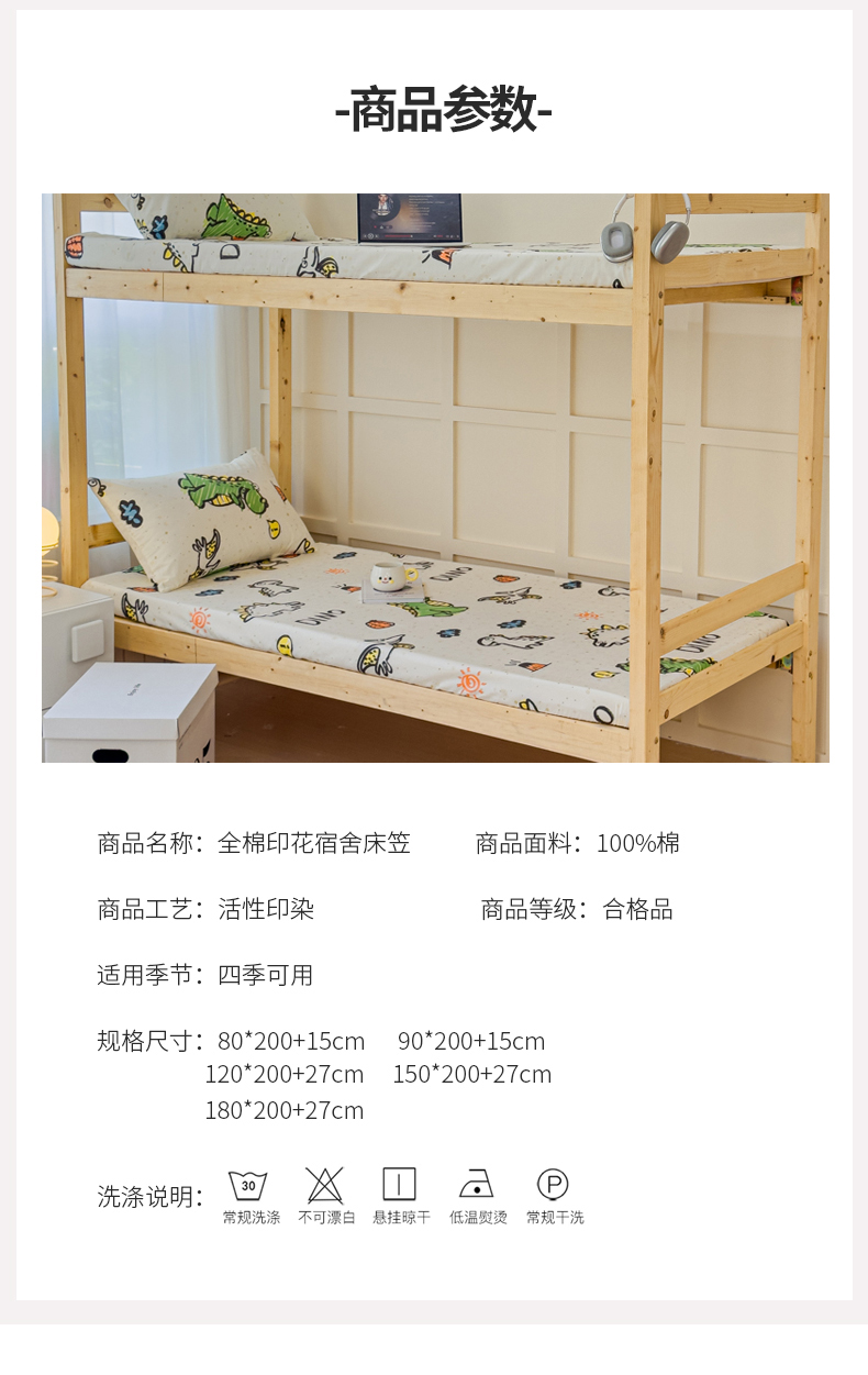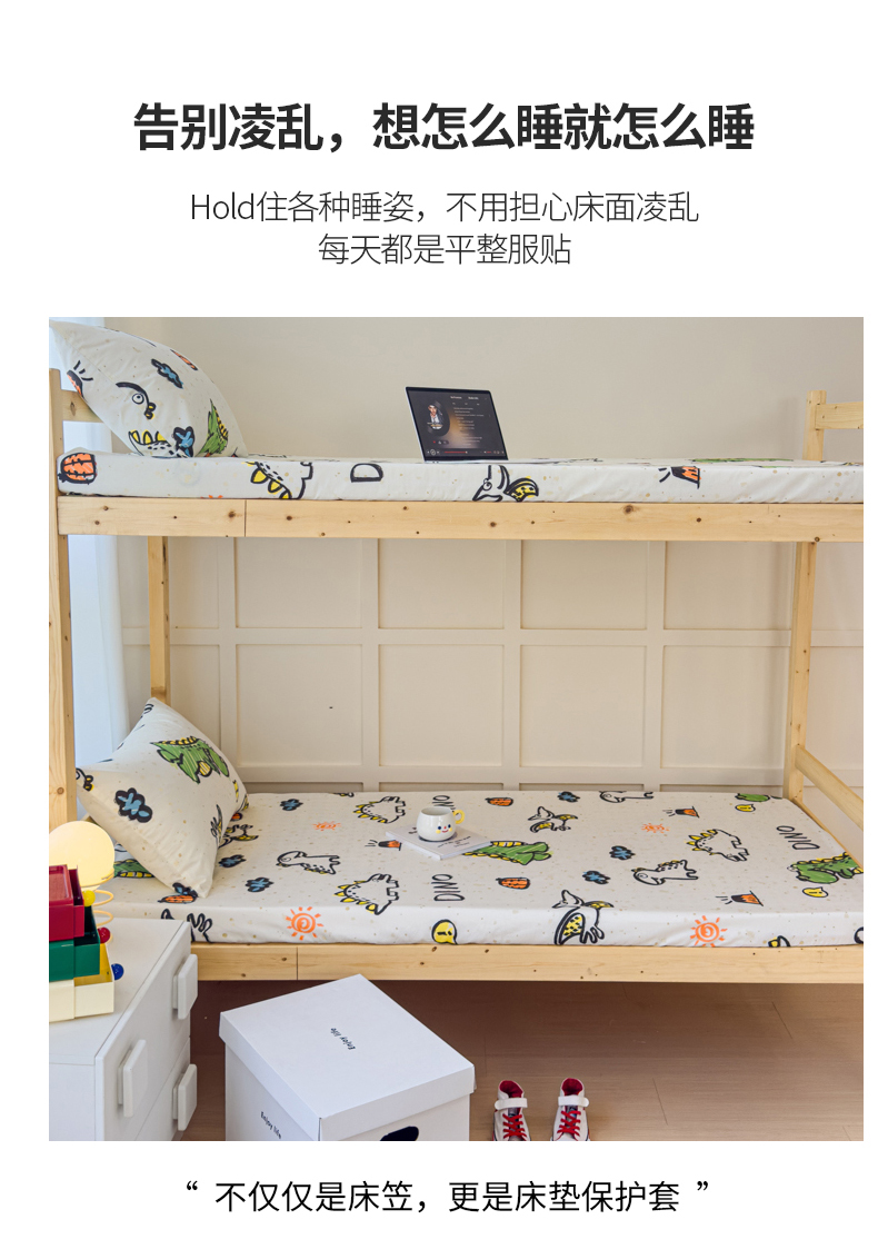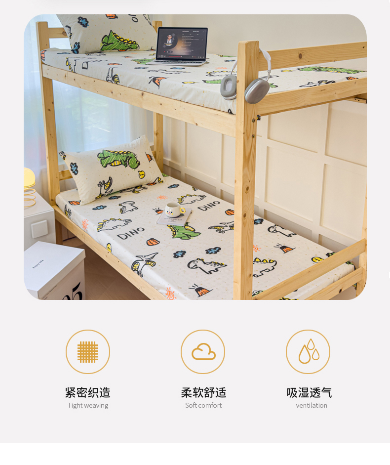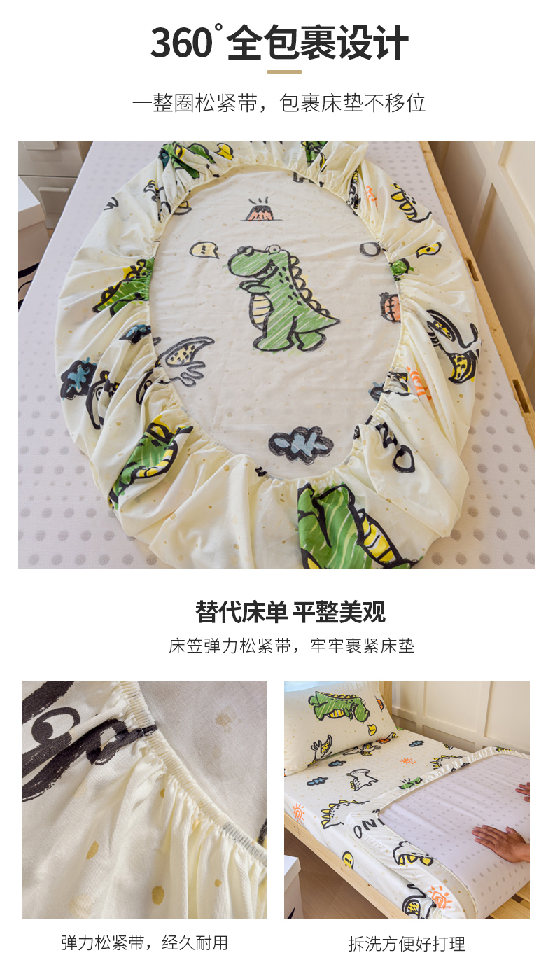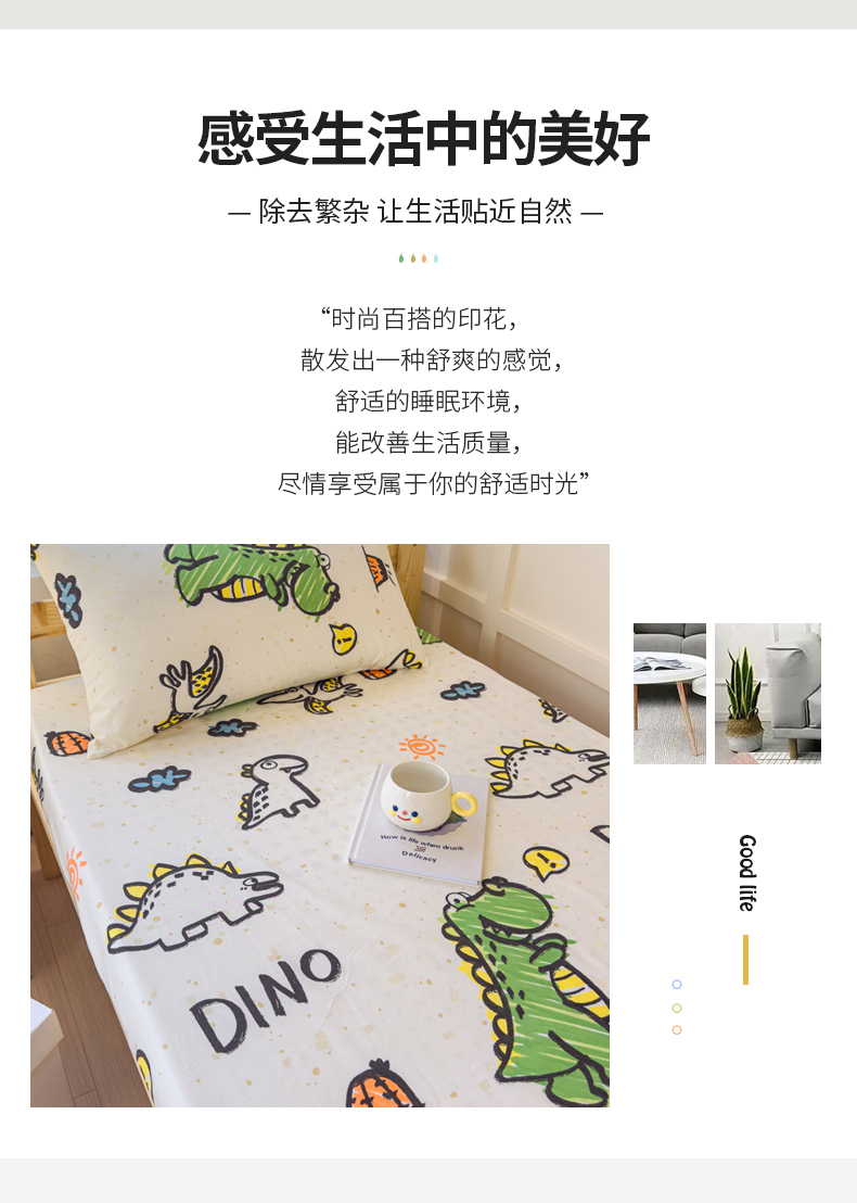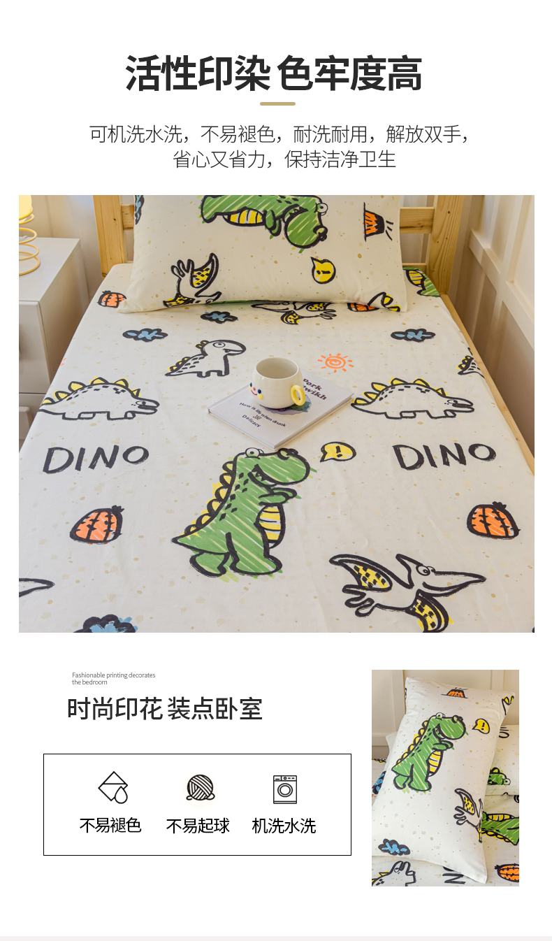• 91家纺网 家纺一手货源 找家纺 金丝鸟家纺 2024新款全棉小清新印花单床笠系列(学生床) 抗浪恐龙