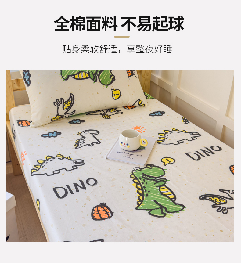 金丝鸟家纺 2024新款全棉小清新印花单床笠系列(学生床) 抗浪恐龙