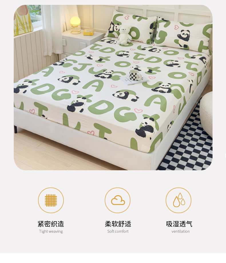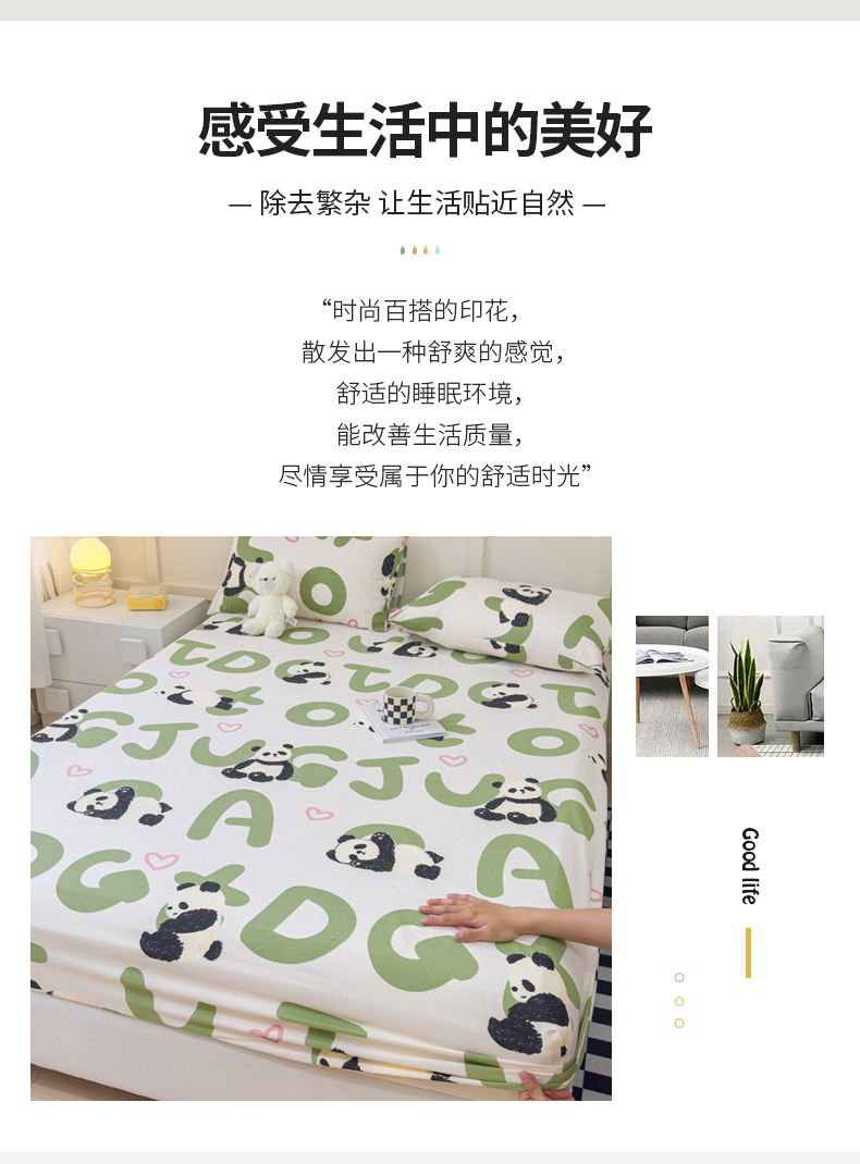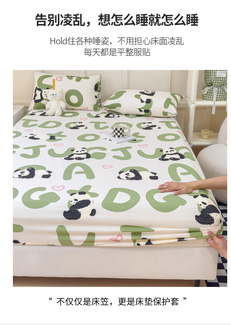 • 91家纺网 家纺一手货源 找家纺 金丝鸟家纺 2024新款全棉小清新印花单床笠系列 国宝字母