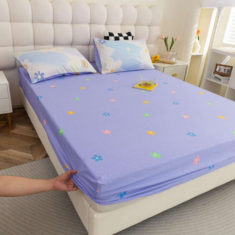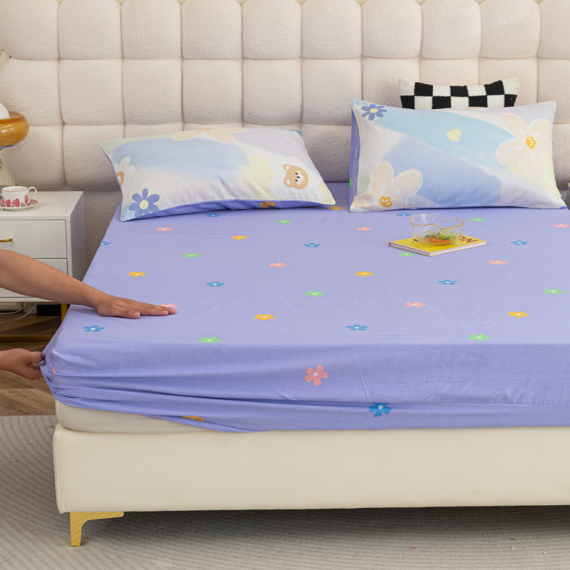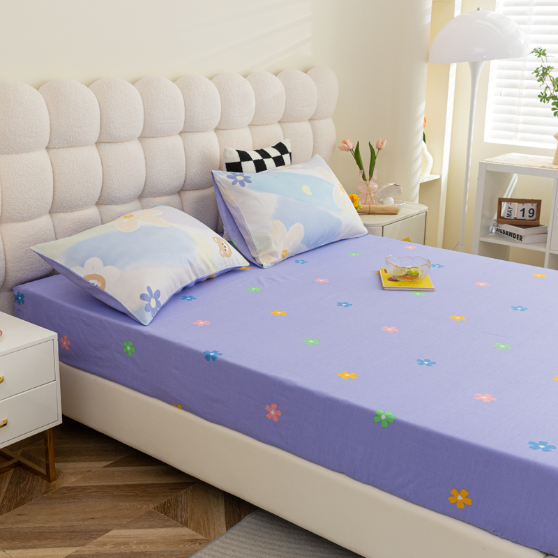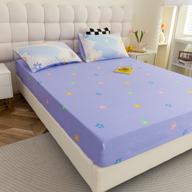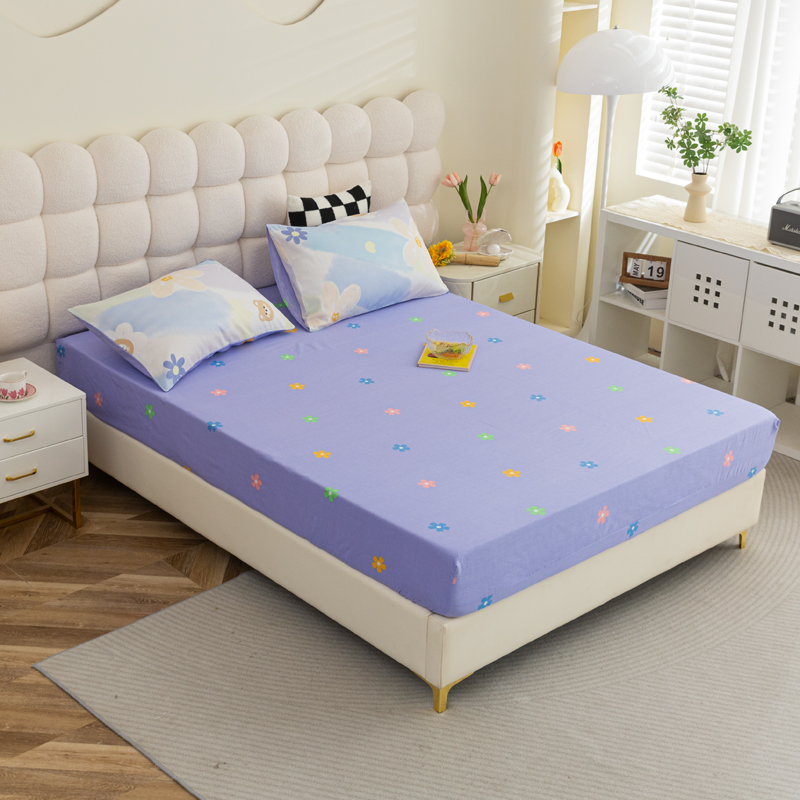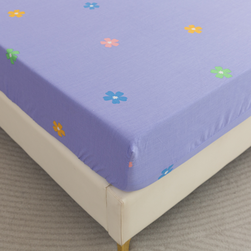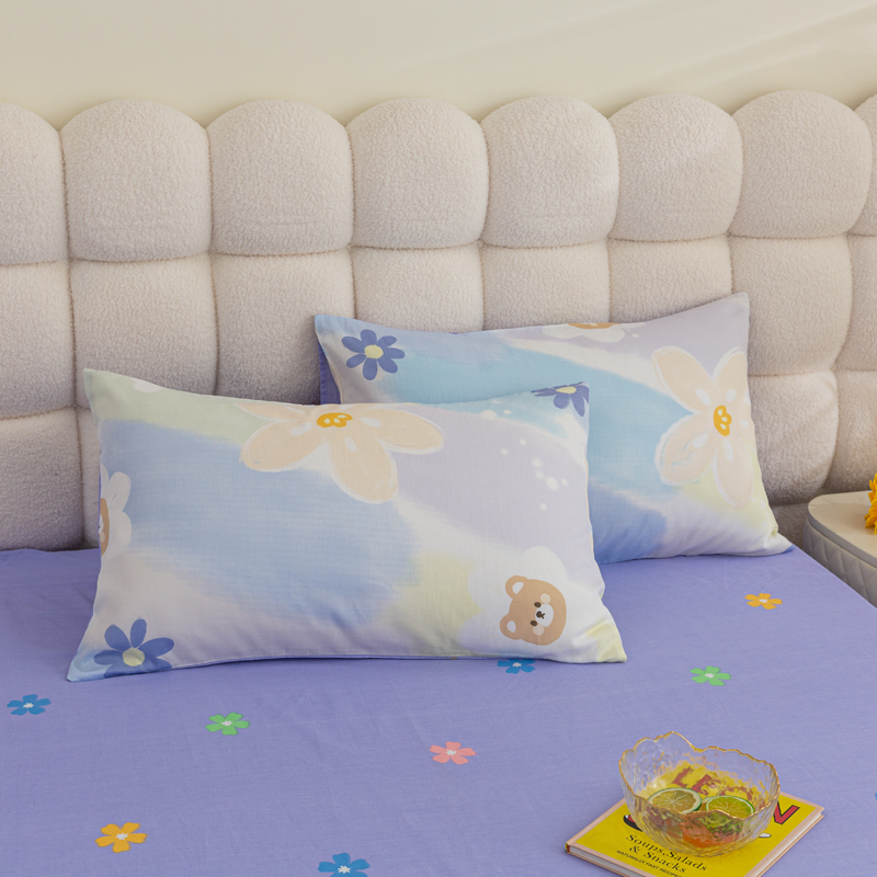 简冠家纺 2025新款纯棉印花床笠 元气小熊-紫