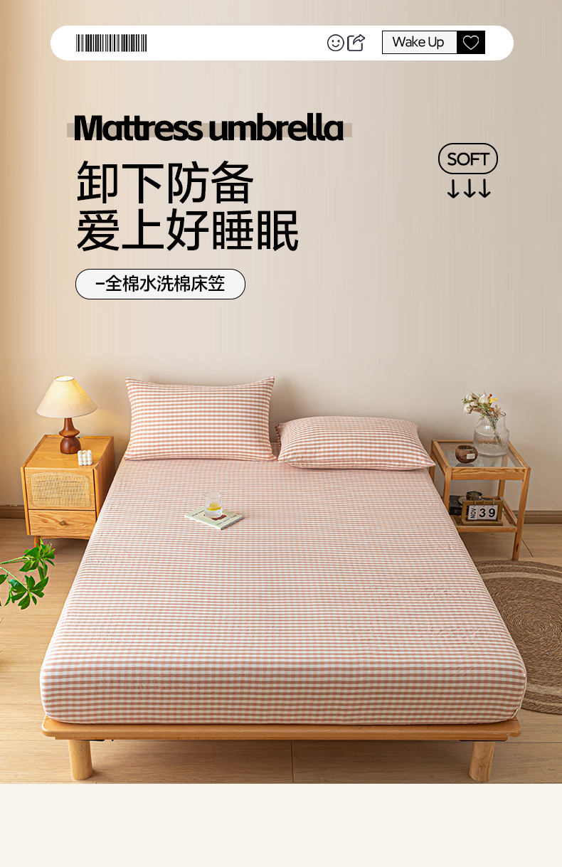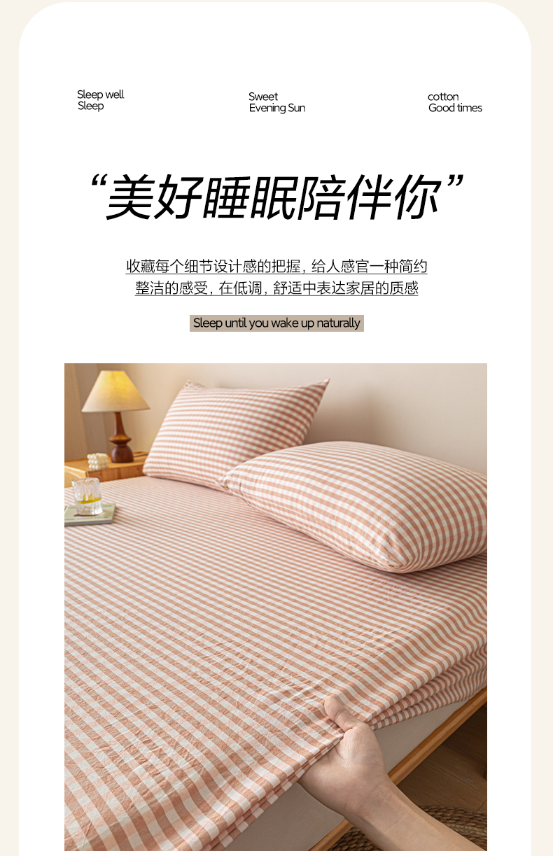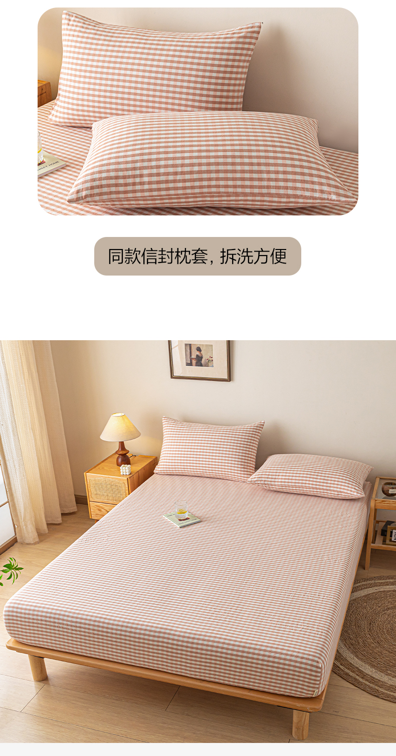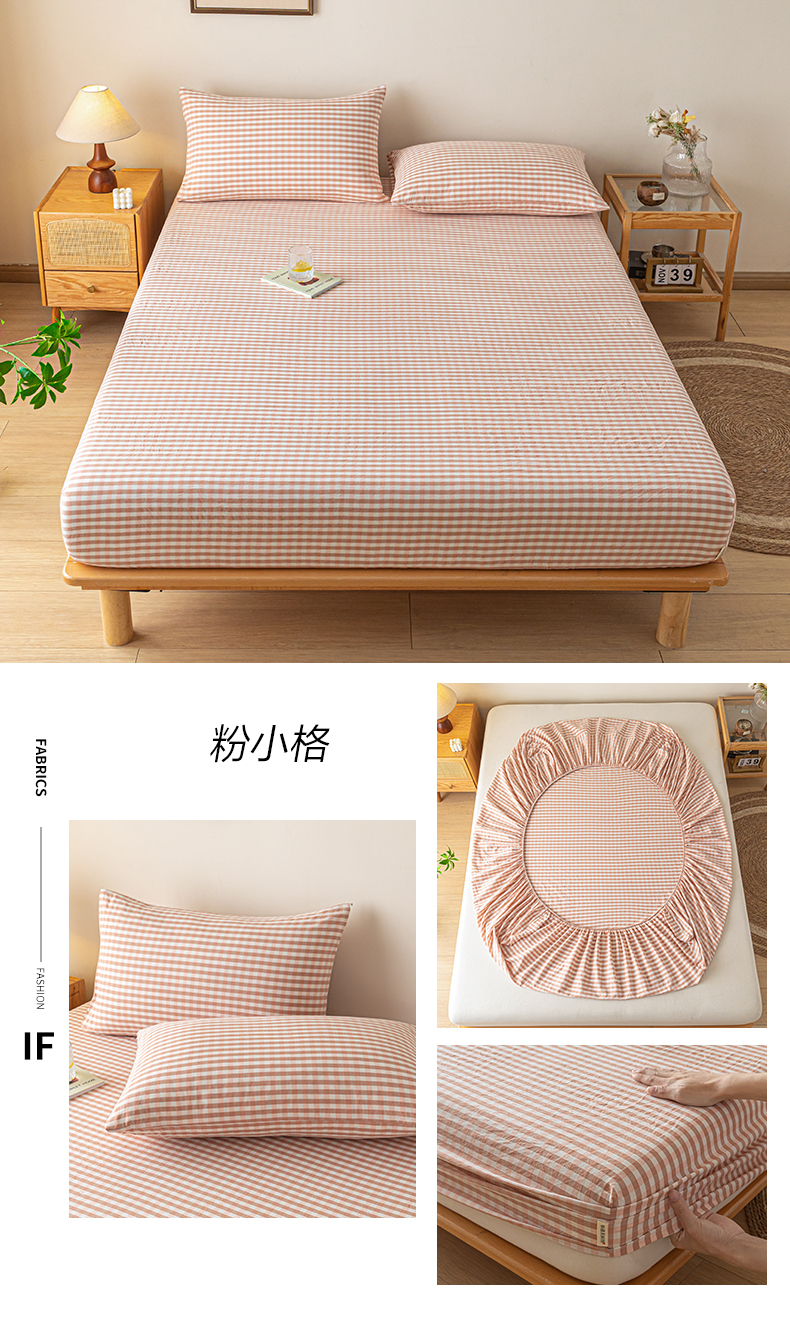 • 91家纺网 家纺一手货源 找家纺 卡伦家纺 2025全棉色织水洗棉单层床笠席梦思保护套 粉小格