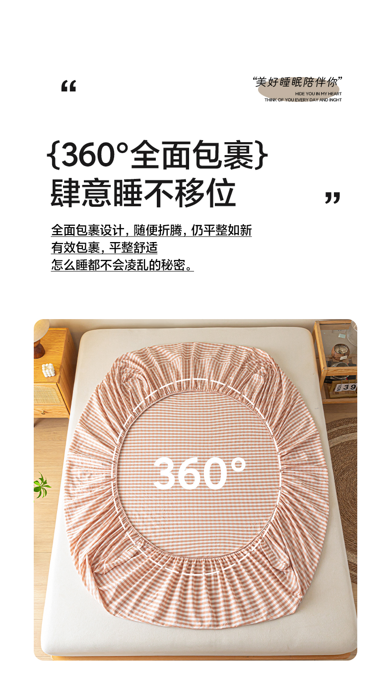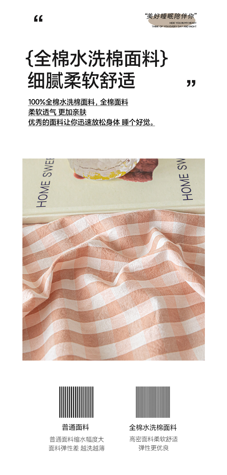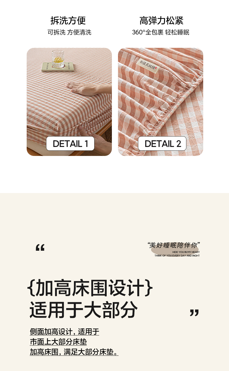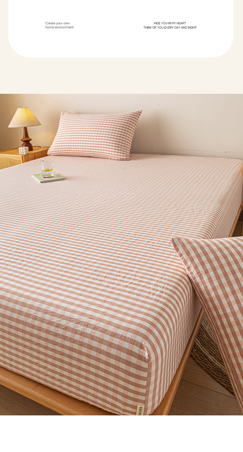 • 91家纺网 家纺一手货源 找家纺 卡伦家纺 2025全棉色织水洗棉单层床笠席梦思保护套 粉小格